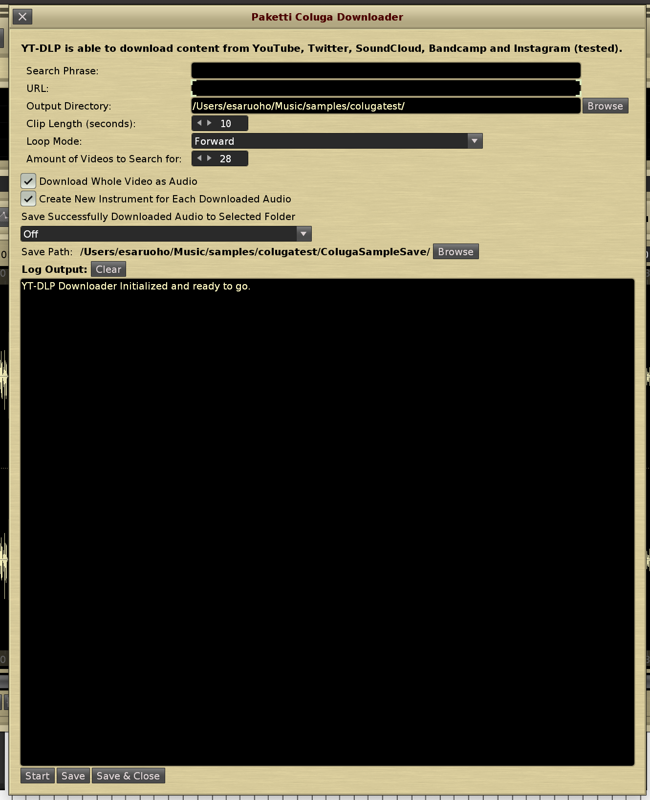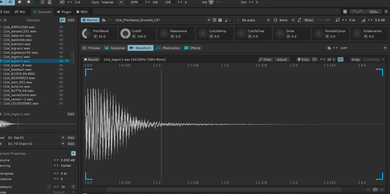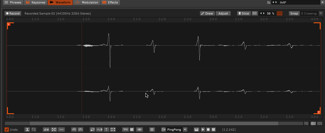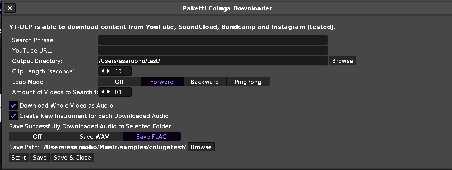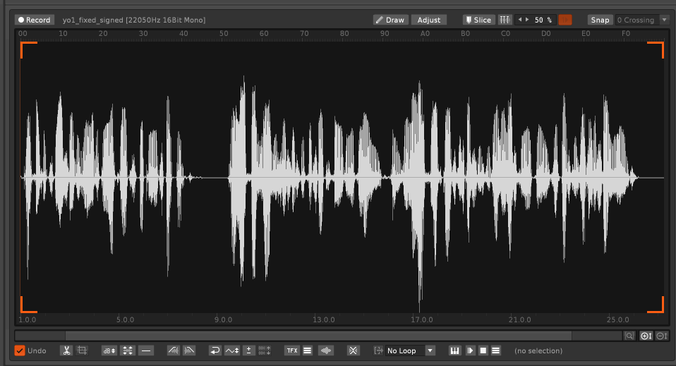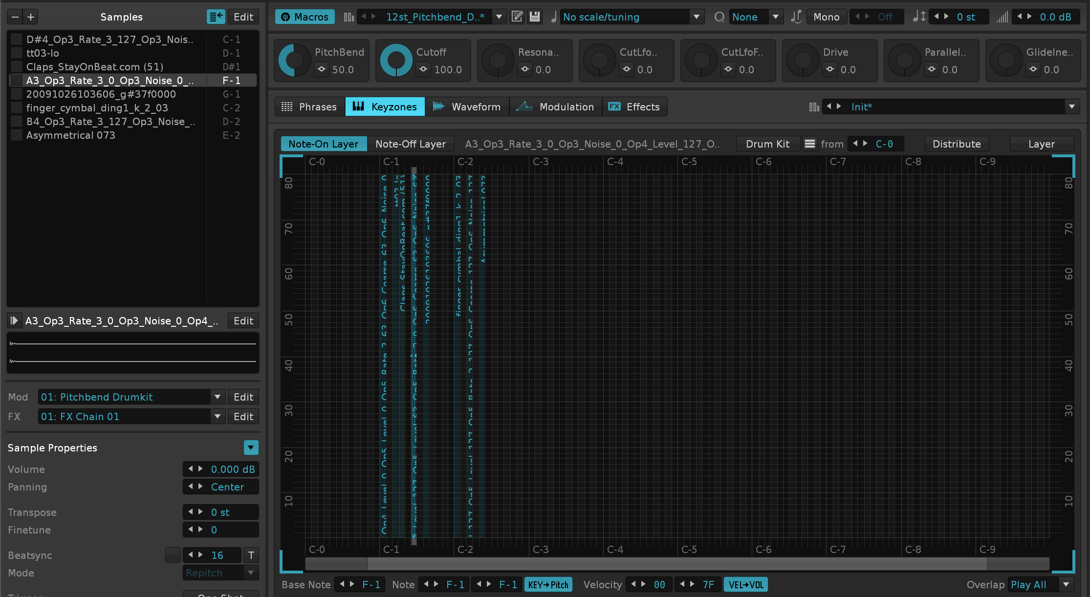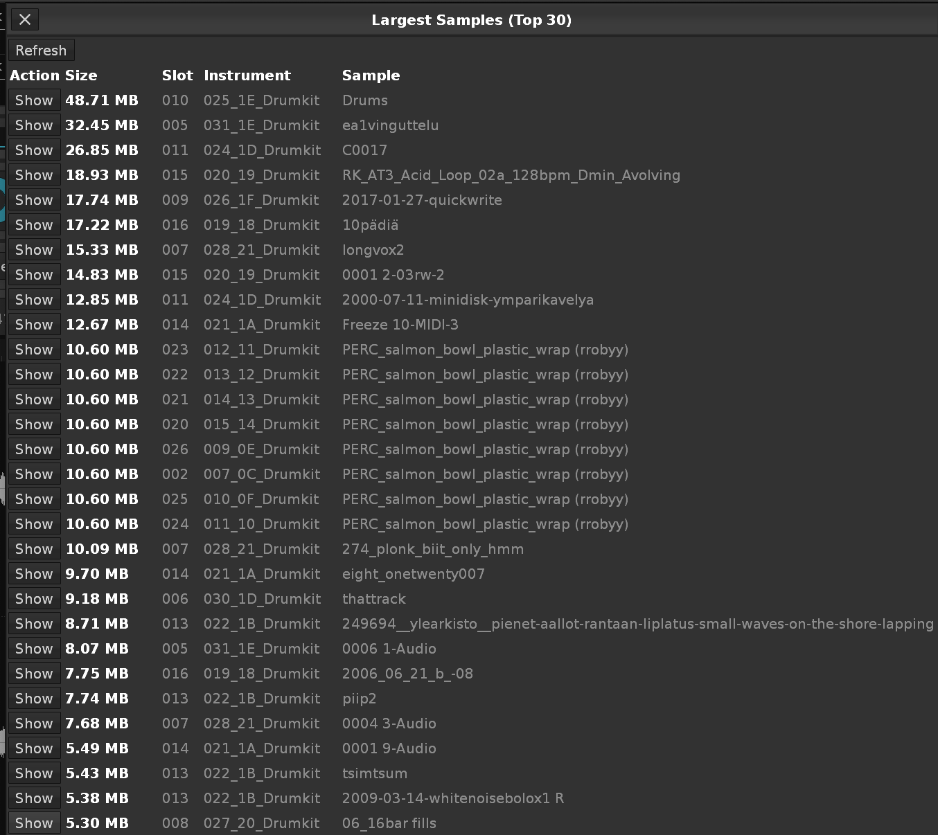 [ and ] format, so if you want to loop [] single pattern, that's what gets looped, if you have a multiple bunch of patterns, start with [ in the name and finish with ] in the name somewhere else.*Instr. Macros devices for each track, and read the BPM from the Wavefile header, or read the BPM from the folder the files are in, then calculate the length of the samples, and add the correct amount of patterns to the pattern sequence, and print, automatically, C-4 (instrumentnumber) 0G01 to every track that has been created, and enable Autoseek for each of the tracks.