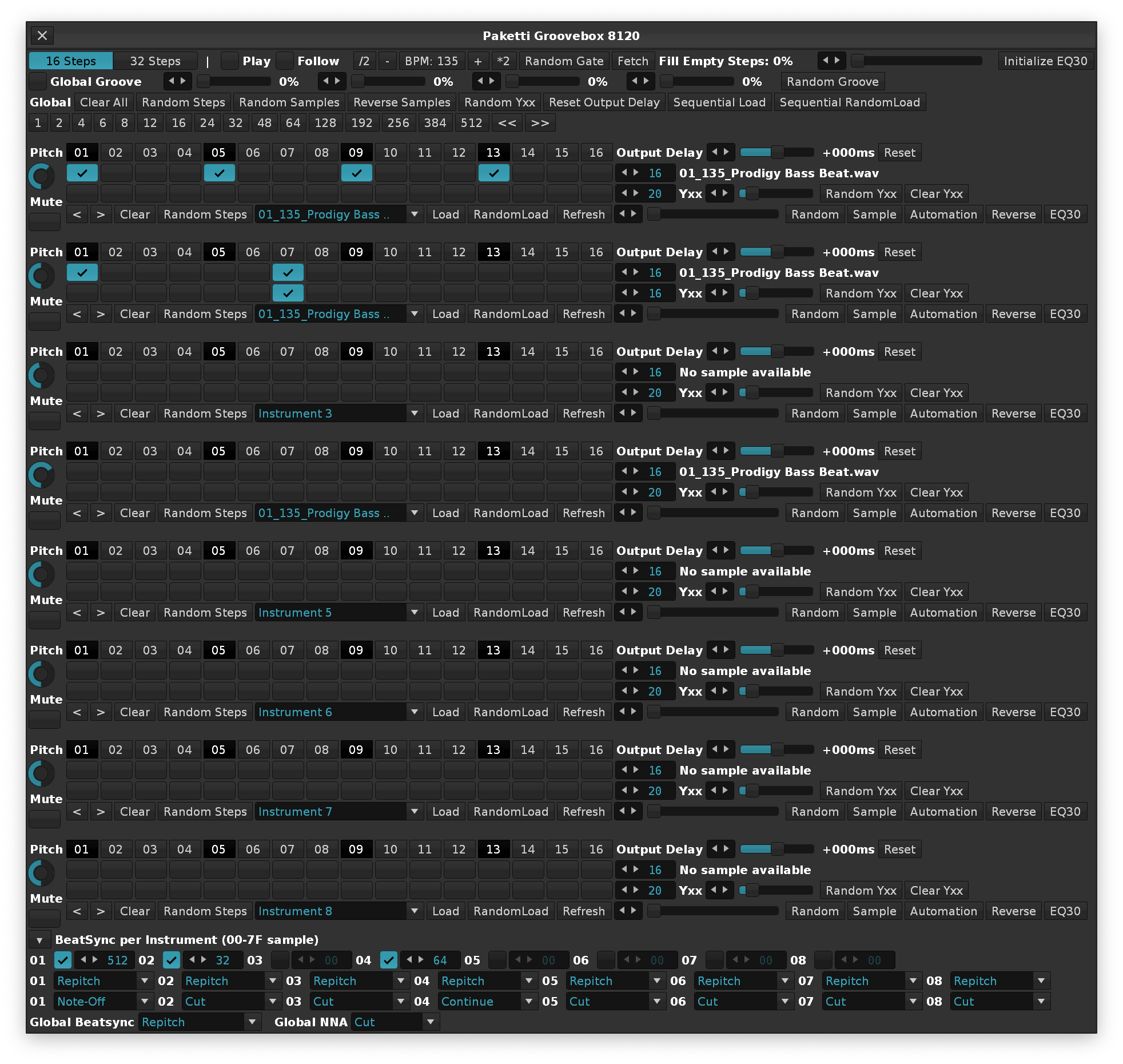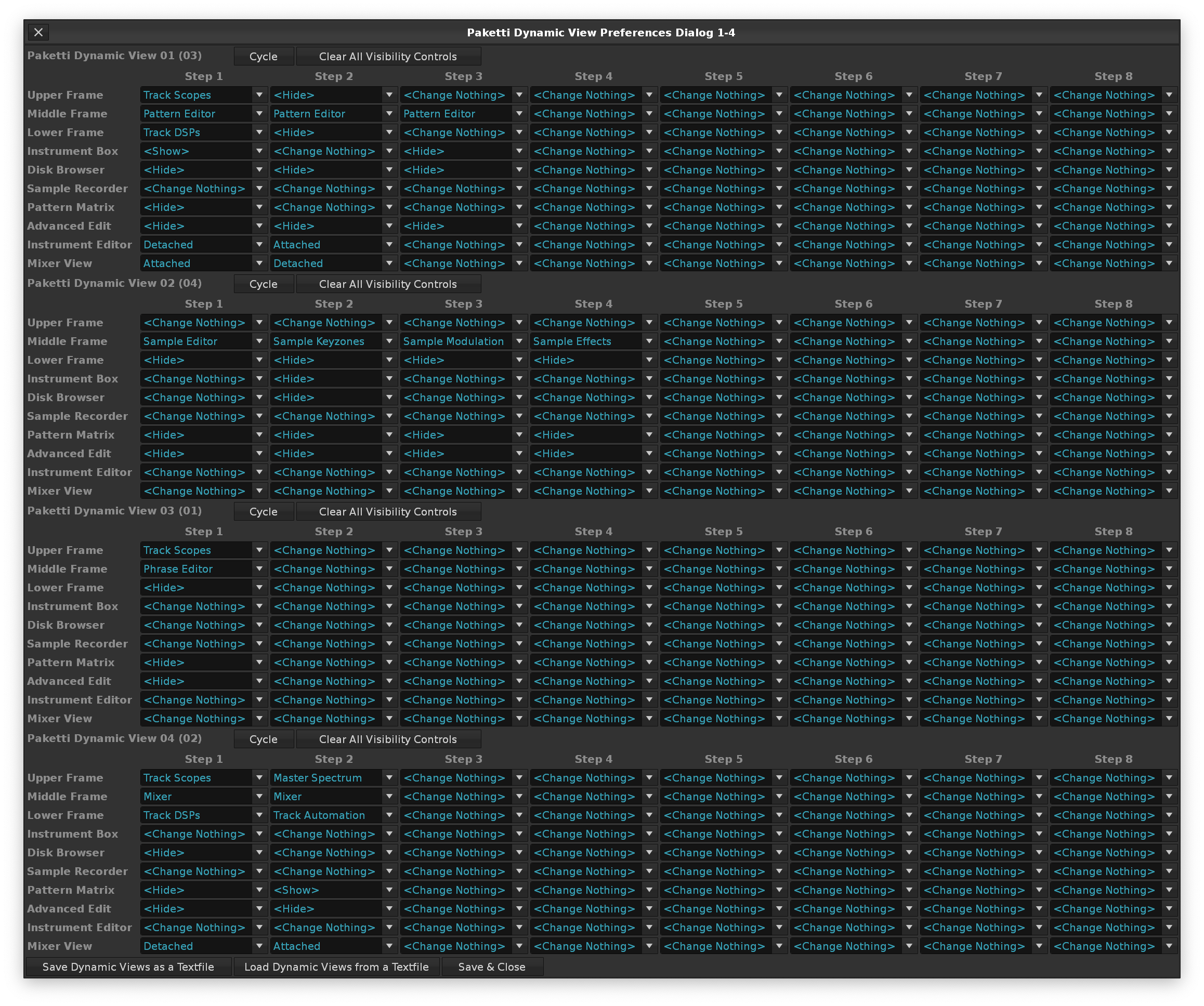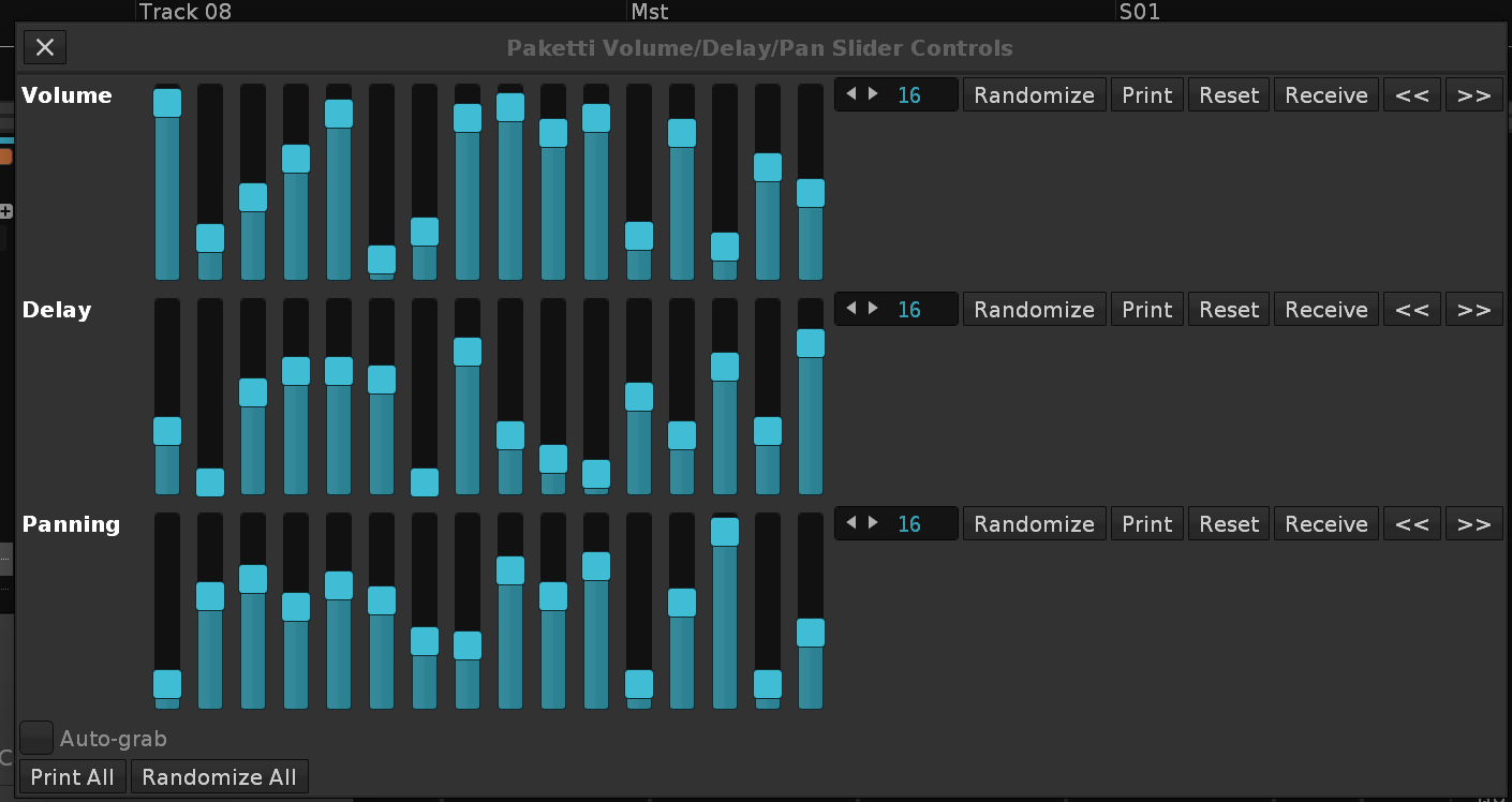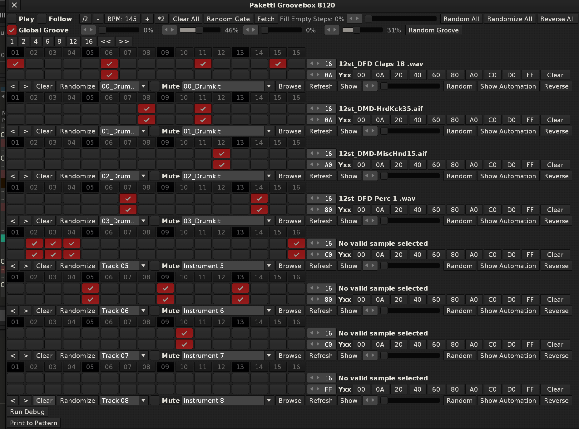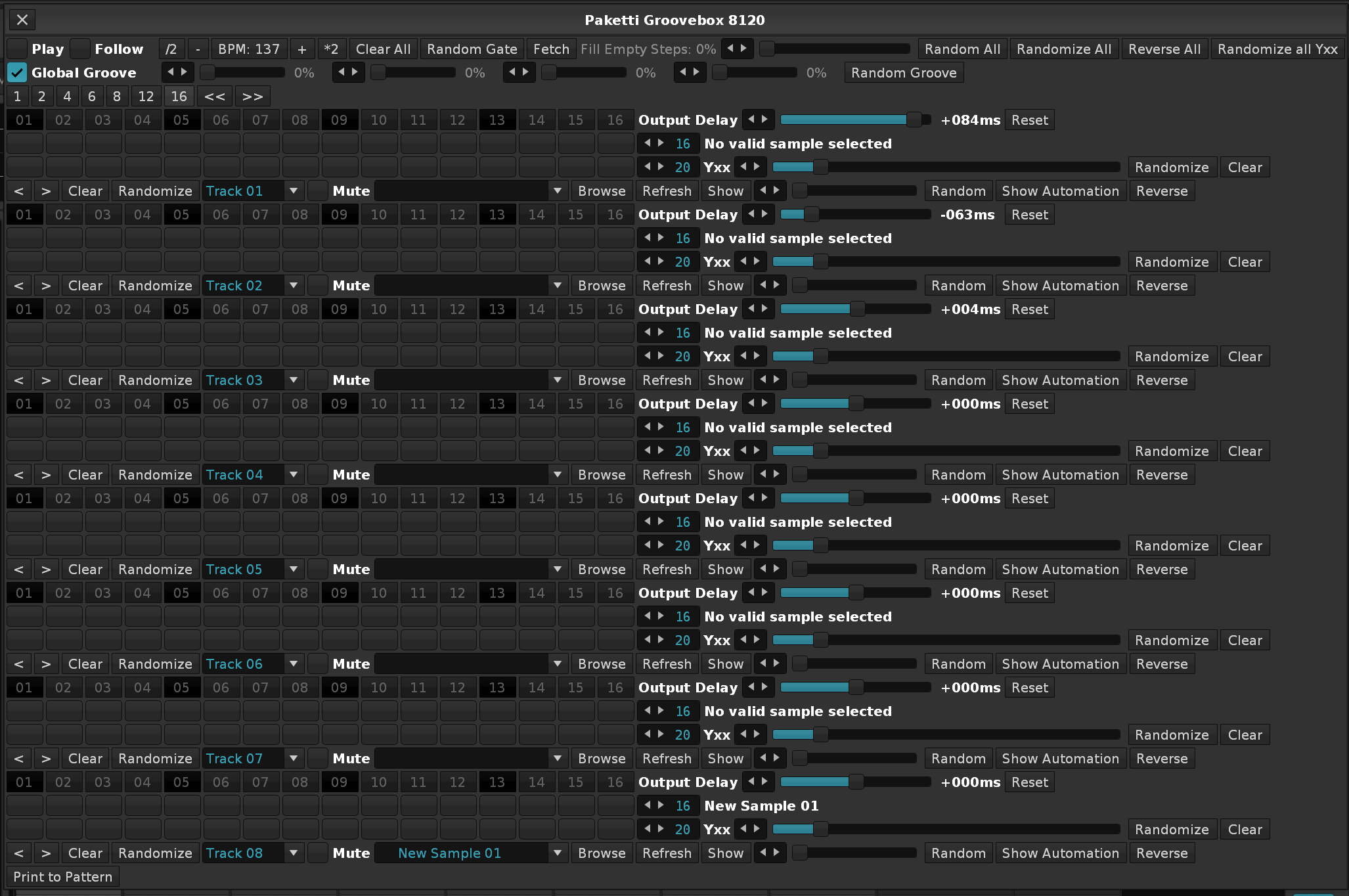 This allows you to pick your favorite 8 slices, or the 8 sample offset values of your choice, and start stepsequencing with them. There's also mute / pitch control for each slice - the pitch is disabled if you hit Sample Offset. And re-enabled when you move back to Slice. It will flood the pattern full (so 16 steps? 512 row pattern? Fills it all). Also you can offset, just like with Paketti Gater + Paketti Groovebox 8120 + Paketti VolDelayPan - them so they keep going against eachother causing all kinds of polyrhythmic fun.