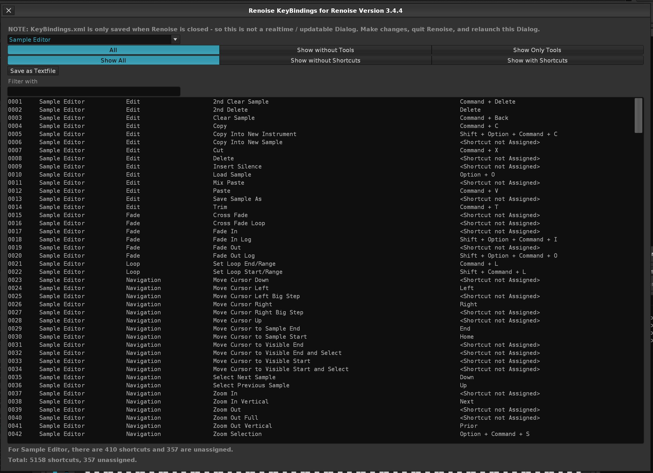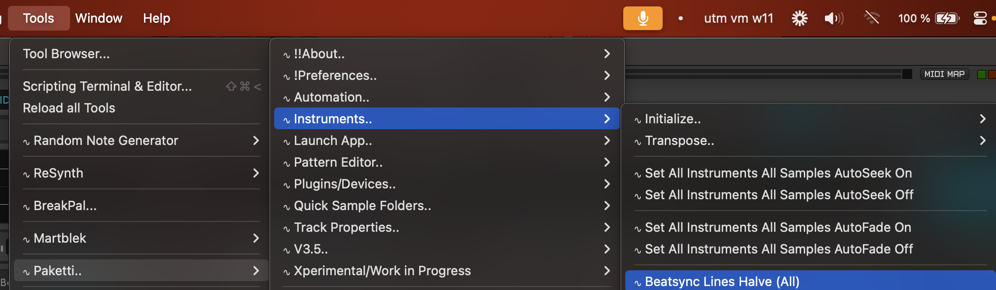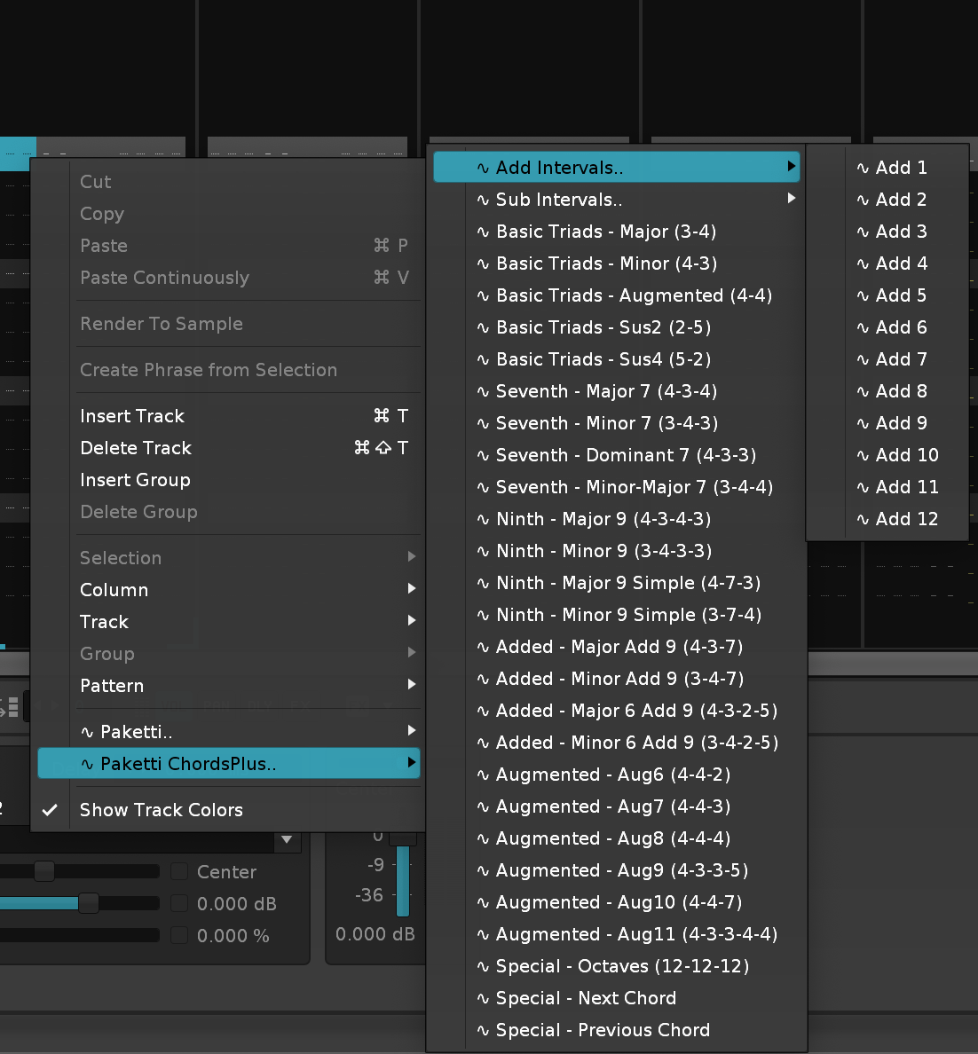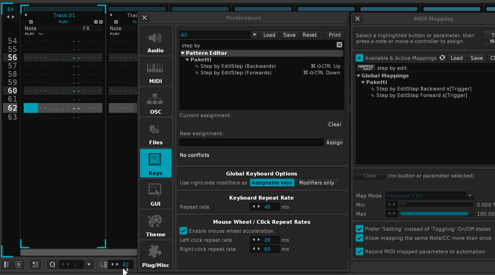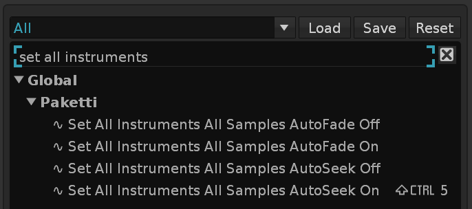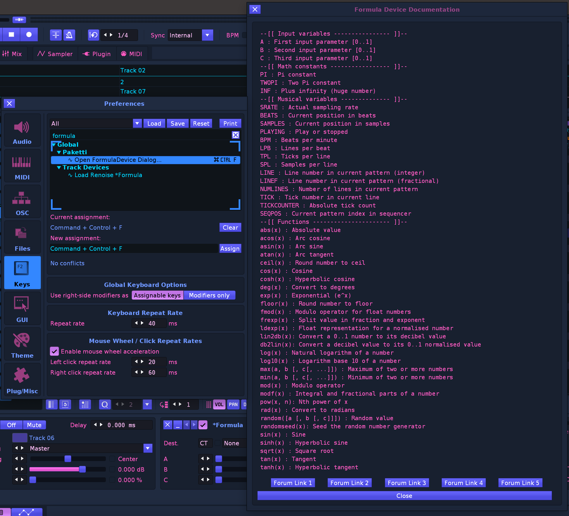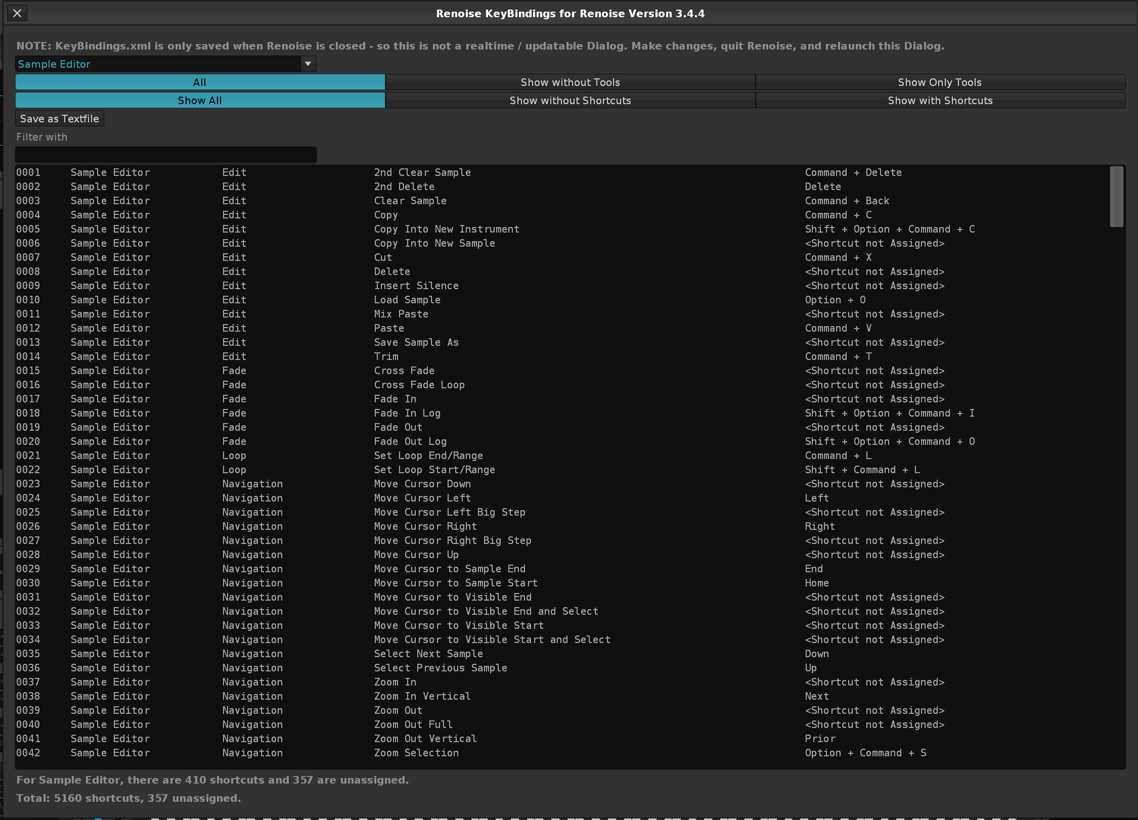 Global:Paketti:Toggle Metronome PrecountPaketti:Toggle Metronome PrecountGlobal:Paketti:Enable Metronome PrecountGlobal:Paketti:Disable Metronome PrecountPaketti:Enable Metronome PrecountPaketti:Disable Metronome PrecountGlobal:Paketti:Toggle Mute/Unmute All TracksPaketti:Toggle Mute/Unmute All TracksGlobal:Paketti:Toggle Mute/Unmute Remembered TracksPaketti:Toggle Mute/Unmute Remembered TracksGlobal:Paketti:Set EditStep & Quantization to 00 through ...to 32Global:Paketti:Increase EditStep & Quantization by 1Global:Paketti:Decrease EditStep & Quantization by 1Global:Paketti:EditStep & Quantization Power of Two AboveGlobal:Paketti:EditStep & Quantization Power of Two BelowPaketti:Set EditStep & Quantization to 00 through ...to 32Paketti:Increase EditStep & Quantization by 1Paketti:Decrease EditStep & Quantization by 1Paketti:EditStep & Quantization Power of Two AbovePaketti:EditStep & Quantization Power of Two BelowPattern Editor:Paketti:Jump to Pattern Fraction 01/02 through 16/16Paketti:Jump to Pattern Fraction 01/02 through 16/16Pattern Editor:Paketti:Save Cursor PositionPattern Editor:Paketti:Jump to Previous PositionGlobal:Paketti:Jump to Previous PositionPaketti:Save Cursor PositionPaketti:Jump to Previous PositionGlobal:Paketti:Move Section Loop (Next)Global:Paketti:Move Section Loop (Previous)Paketti:Move Section Loop (Next)Paketti:Move Section Loop (Previous)Pattern Editor:Paketti:Note Off All Columns in GroupPaketti:Note Off All Columns in GroupPattern Editor:Paketti:Mute Playing Note (Insert Note Off)Paketti:Mute Playing Note (Insert Note Off)Global:Paketti:Clone Sequence Without AutomationPattern Sequencer:Paketti:Clone Sequence Without AutomationPattern Matrix:Paketti:Clone Sequence Without AutomationPaketti:Clone Sequence Without AutomationGlobal:Paketti:Wipe Drumkit Sample FX AssignmentsPaketti:Wipe Drumkit Sample FX AssignmentsPattern Editor:Paketti:Invert Volume OnlyPattern Editor:Paketti:Invert Panning OnlyPattern Editor:Paketti:Invert Delay OnlyPattern Editor:Paketti:Invert Sample FX OnlyPaketti:Invert Volume OnlyPaketti:Invert Panning OnlyPaketti:Invert Delay OnlyPaketti:Invert Sample FX OnlyPattern Editor:Paketti:BPM Switcher Dialog...Paketti:BPM Switcher DialogPattern Editor:Paketti:Write Track Mute (0L00)Pattern Editor:Paketti:Write Track Unmute (0L80)Pattern Editor:Paketti:Write Track Solo via 0L00 (Mute All Others)Pattern Editor:Paketti:Write Track Unsolo via 0L80 (Unmute All)Paketti:Write Track Mute (0L00)Paketti:Write Track Unmute (0L80)Paketti:Write Track Solo via 0L00Paketti:Write Track Unsolo via 0L80Global:Paketti:Step Sequencer FX Randomizer Dialog...Paketti:Pattern Editor:Step Sequencer FX RandomizerMain Menu:Tools:Paketti:Pattern Editor:Step Sequencer FX Randomizer...Pattern Editor:Paketti:Step Sequencer FX Randomizer...Pattern Editor:Paketti:Interpolate Current Subcolumn ValuesPattern Editor:Paketti:Interpolate Column Values (Effect Column)Paketti:Interpolate Current Subcolumn ValuesPaketti:Interpolate Column Values (Effect Column)Pattern Editor:Paketti:Fill Effect Column Between NotesPattern Editor:Paketti:Fill Sample Effects Between NotesPaketti:Fill Effect Column Between NotesPaketti:Fill Sample Effects Between NotesPattern Editor:Paketti:Play Next Note LinePattern Editor:Paketti:Play Previous Note LinePaketti:Play Next Note LinePaketti:Play Previous Note LinePattern Editor:Paketti:Clever Note Off Wipe & Replace (Right After)Pattern Editor:Paketti:Clever Note Off Wipe & Replace (Right Before)Pattern Editor:Paketti:Clever Note Off Wipe & Replace (Half Before)Paketti:Clever Note Off Wipe & Replace (Right After)Paketti:Clever Note Off Wipe & Replace (Right Before)Paketti:Clever Note Off Wipe & Replace (Half Before)Pattern Editor:Paketti:Clever Note Off Delay +1Pattern Editor:Paketti:Clever Note Off Delay -1Pattern Editor:Paketti:Clever Note Off Delay +10Pattern Editor:Paketti:Clever Note Off Delay -10Paketti:Clever Note Off Delay +1Paketti:Clever Note Off Delay -1Paketti:Clever Note Off Delay +10Paketti:Clever Note Off Delay -10Pattern Editor:Paketti:Clever Note Off Reset DelayPaketti:Clever Note Off Reset DelayPattern Editor:Paketti:OctaMED Note Echo Dialog...Paketti:OctaMED Note Echo DialogPakettiSetEditStepAndQuantization() forcing quantize enabled when changing values. Now saves and restores the record_quantize_enabled state so changing EditStep/Quantization values no longer toggles quantize on/off. Status bar shows enabled state: EditStep: 8, Quantize: 8 (On) or (Off).Global:Paketti:Increase EditStep & Quantization by 1, Global:Paketti:Decrease EditStep & Quantization by 1, Global:Paketti:EditStep & Quantization Power of Two Above/Below, Global:Paketti:Set EditStep & Quantization to 00 through 32nudge_with_delay() now sets delay_column_visible = true for ALL tracks in the selection, not just the currently selected track.Pattern Editor:Paketti:Nudge with Delay (Down), Pattern Editor:Paketti:Nudge with Delay (Up)Pattern Editor:Paketti:Interpolate Column Values Exponential (Volume), Pattern Editor:Paketti:Interpolate Column Values Exponential (Panning), Pattern Editor:Paketti:Interpolate Column Values Exponential (Delay), Pattern Editor:Paketti:Interpolate Column Values Exponential (Sample FX), Pattern Editor:Paketti:Interpolate Column Values Exponential (Effect Column), Pattern Editor:Paketti:Interpolate Current Subcolumn Values ExponentialPaketti:Interpolate Column Values Exponential (...)Pattern Editor:Paketti:Jump to Pattern Position Dialog...Paketti:Jump to Pattern Position DialogGlobal:Paketti:Clone and Expand Pattern to LPB*2 (existing, now handles large patterns)visible_note_columns to match (minimum 1). Cleans up tracks with excess empty columns.Global:Paketti:Remove Unused Note ColumnsPaketti:Remove Unused Note ColumnsMain Menu:Tools:Paketti:Pattern Editor:Remove Unused Note ColumnsGlobal:Paketti:Remove Unused Effect ColumnsPaketti:Remove Unused Effect ColumnsMain Menu:Tools:Paketti:Pattern Editor:Remove Unused Effect ColumnsGlobal:Paketti:Re