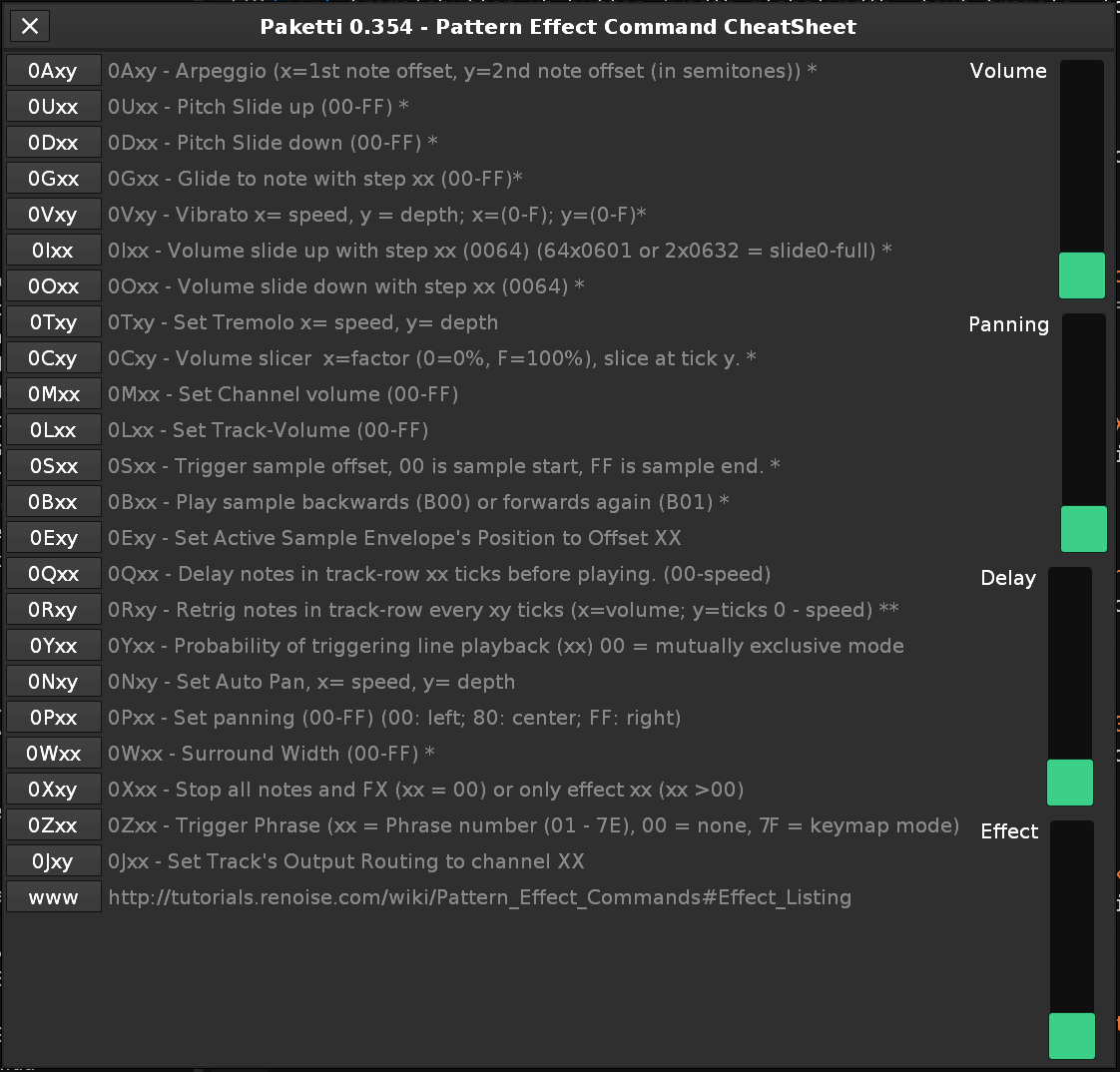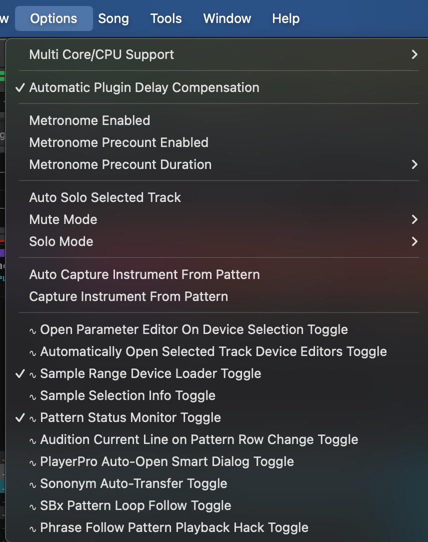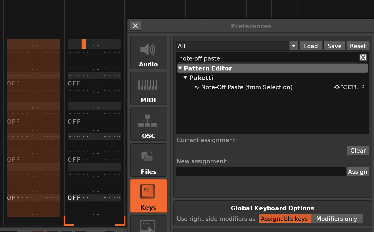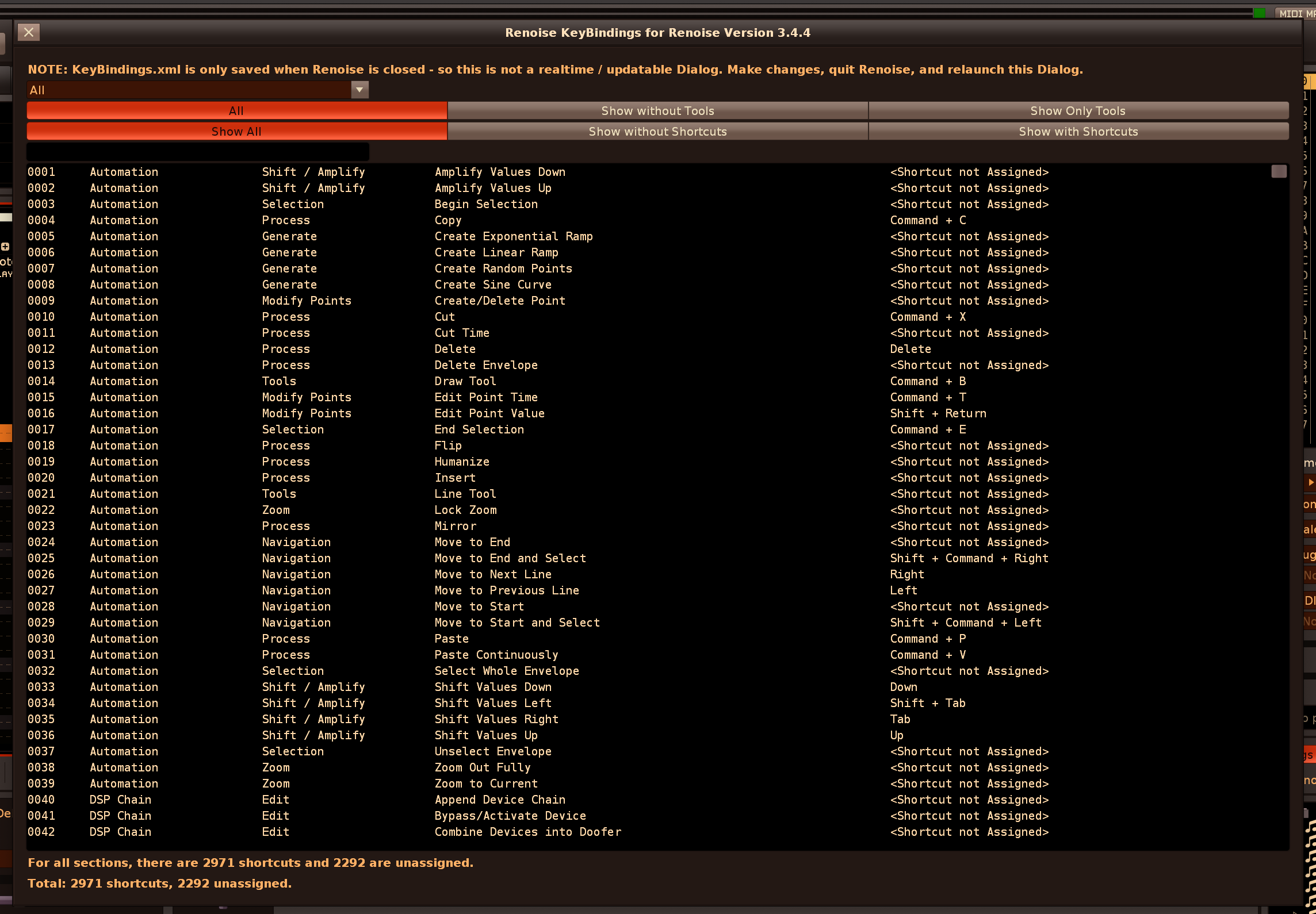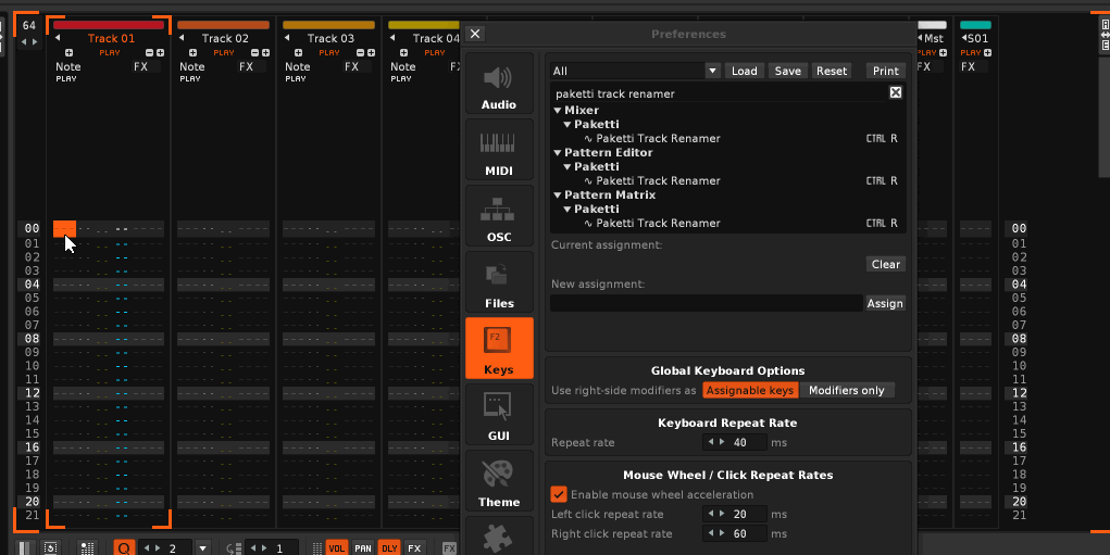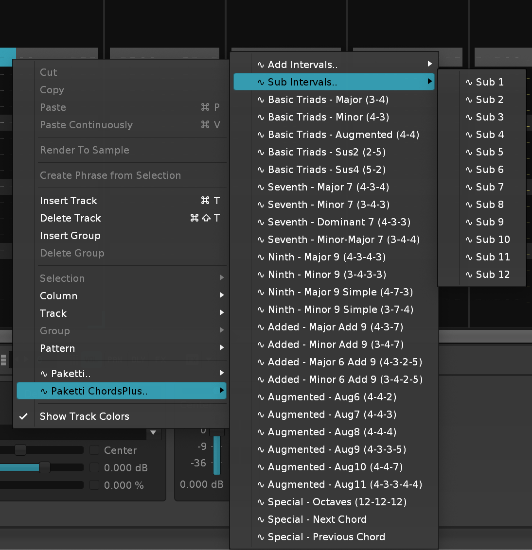 Global:Paketti:Toggle Metronome PrecountPaketti:Toggle Metronome PrecountGlobal:Paketti:Enable Metronome PrecountGlobal:Paketti:Disable Metronome PrecountPaketti:Enable Metronome PrecountPaketti:Disable Metronome PrecountGlobal:Paketti:Toggle Mute/Unmute All TracksPaketti:Toggle Mute/Unmute All TracksGlobal:Paketti:Toggle Mute/Unmute Remembered TracksPaketti:Toggle Mute/Unmute Remembered TracksGlobal:Paketti:Set EditStep & Quantization to 00 through ...to 32Global:Paketti:Increase EditStep & Quantization by 1Global:Paketti:Decrease EditStep & Quantization by 1Global:Paketti:EditStep & Quantization Power of Two AboveGlobal:Paketti:EditStep & Quantization Power of Two BelowPaketti:Set EditStep & Quantization to 00 through ...to 32Paketti:Increase EditStep & Quantization by 1Paketti:Decrease EditStep & Quantization by 1Paketti:EditStep & Quantization Power of Two AbovePaketti:EditStep & Quantization Power of Two BelowPattern Editor:Paketti:Jump to Pattern Fraction 01/02 through 16/16Paketti:Jump to Pattern Fraction 01/02 through 16/16Pattern Editor:Paketti:Save Cursor PositionPattern Editor:Paketti:Jump to Previous PositionGlobal:Paketti:Jump to Previous PositionPaketti:Save Cursor PositionPaketti:Jump to Previous PositionGlobal:Paketti:Move Section Loop (Next)Global:Paketti:Move Section Loop (Previous)Paketti:Move Section Loop (Next)Paketti:Move Section Loop (Previous)Pattern Editor:Paketti:Note Off All Columns in GroupPaketti:Note Off All Columns in GroupPattern Editor:Paketti:Mute Playing Note (Insert Note Off)Paketti:Mute Playing Note (Insert Note Off)Global:Paketti:Clone Sequence Without AutomationPattern Sequencer:Paketti:Clone Sequence Without AutomationPattern Matrix:Paketti:Clone Sequence Without AutomationPaketti:Clone Sequence Without AutomationGlobal:Paketti:Wipe Drumkit Sample FX AssignmentsPaketti:Wipe Drumkit Sample FX AssignmentsPattern Editor:Paketti:Invert Volume OnlyPattern Editor:Paketti:Invert Panning OnlyPattern Editor:Paketti:Invert Delay OnlyPattern Editor:Paketti:Invert Sample FX OnlyPaketti:Invert Volume OnlyPaketti:Invert Panning OnlyPaketti:Invert Delay OnlyPaketti:Invert Sample FX OnlyPattern Editor:Paketti:BPM Switcher Dialog...Paketti:BPM Switcher DialogPattern Editor:Paketti:Write Track Mute (0L00)Pattern Editor:Paketti:Write Track Unmute (0L80)Pattern Editor:Paketti:Write Track Solo via 0L00 (Mute All Others)Pattern Editor:Paketti:Write Track Unsolo via 0L80 (Unmute All)Paketti:Write Track Mute (0L00)Paketti:Write Track Unmute (0L80)Paketti:Write Track Solo via 0L00Paketti:Write Track Unsolo via 0L80Global:Paketti:Step Sequencer FX Randomizer Dialog...Paketti:Pattern Editor:Step Sequencer FX RandomizerMain Menu:Tools:Paketti:Pattern Editor:Step Sequencer FX Randomizer...Pattern Editor:Paketti:Step Sequencer FX Randomizer...Pattern Editor:Paketti:Interpolate Current Subcolumn ValuesPattern Editor:Paketti:Interpolate Column Values (Effect Column)Paketti:Interpolate Current Subcolumn ValuesPaketti:Interpolate Column Values (Effect Column)Pattern Editor:Paketti:Fill Effect Column Between NotesPattern Editor:Paketti:Fill Sample Effects Between NotesPaketti:Fill Effect Column Between NotesPaketti:Fill Sample Effects Between NotesPattern Editor:Paketti:Play Next Note LinePattern Editor:Paketti:Play Previous Note LinePaketti:Play Next Note LinePaketti:Play Previous Note LinePattern Editor:Paketti:Clever Note Off Wipe & Replace (Right After)Pattern Editor:Paketti:Clever Note Off Wipe & Replace (Right Before)Pattern Editor:Paketti:Clever Note Off Wipe & Replace (Half Before)Paketti:Clever Note Off Wipe & Replace (Right After)Paketti:Clever Note Off Wipe & Replace (Right Before)Paketti:Clever Note Off Wipe & Replace (Half Before)Pattern Editor:Paketti:Clever Note Off Delay +1Pattern Editor:Paketti:Clever Note Off Delay -1Pattern Editor:Paketti:Clever Note Off Delay +10Pattern Editor:Paketti:Clever Note Off Delay -10Paketti:Clever Note Off Delay +1Paketti:Clever Note Off Delay -1Paketti:Clever Note Off Delay +10Paketti:Clever Note Off Delay -10Pattern Editor:Paketti:Clever Note Off Reset DelayPaketti:Clever Note Off Reset DelayPattern Editor:Paketti:OctaMED Note Echo Dialog...Paketti:OctaMED Note Echo DialogPakettiSetEditStepAndQuantization() forcing quantize enabled when changing values. Now saves and restores the record_quantize_enabled state so changing EditStep/Quantization values no longer toggles quantize on/off. Status bar shows enabled state: EditStep: 8, Quantize: 8 (On) or (Off).Global:Paketti:Increase EditStep & Quantization by 1, Global:Paketti:Decrease EditStep & Quantization by 1, Global:Paketti:EditStep & Quantization Power of Two Above/Below, Global:Paketti:Set EditStep & Quantization to 00 through 32nudge_with_delay() now sets delay_column_visible = true for ALL tracks in the selection, not just the currently selected track.Pattern Editor:Paketti:Nudge with Delay (Down), Pattern Editor:Paketti:Nudge with Delay (Up)Pattern Editor:Paketti:Interpolate Column Values Exponential (Volume), Pattern Editor:Paketti:Interpolate Column Values Exponential (Panning), Pattern Editor:Paketti:Interpolate Column Values Exponential (Delay), Pattern Editor:Paketti:Interpolate Column Values Exponential (Sample FX), Pattern Editor:Paketti:Interpolate Column Values Exponential (Effect Column), Pattern Editor:Paketti:Interpolate Current Subcolumn Values ExponentialPaketti:Interpolate Column Values Exponential (...)Pattern Editor:Paketti:Jump to Pattern Position Dialog...Paketti:Jump to Pattern Position DialogGlobal:Paketti:Clone and Expand Pattern to LPB*2 (existing, now handles large patterns)visible_note_columns to match (minimum 1). Cleans up tracks with excess empty columns.Global:Paketti:Remove Unused Note ColumnsPaketti:Remove Unused Note ColumnsMain Menu:Tools:Paketti:Pattern Editor:Remove Unused Note ColumnsGlobal:Paketti:Remove Unused Effect ColumnsPaketti:Remove Unused Effect ColumnsMain Menu:Tools:Paketti:Pattern Editor:Remove Unused Effect ColumnsGlobal:Paketti:Re