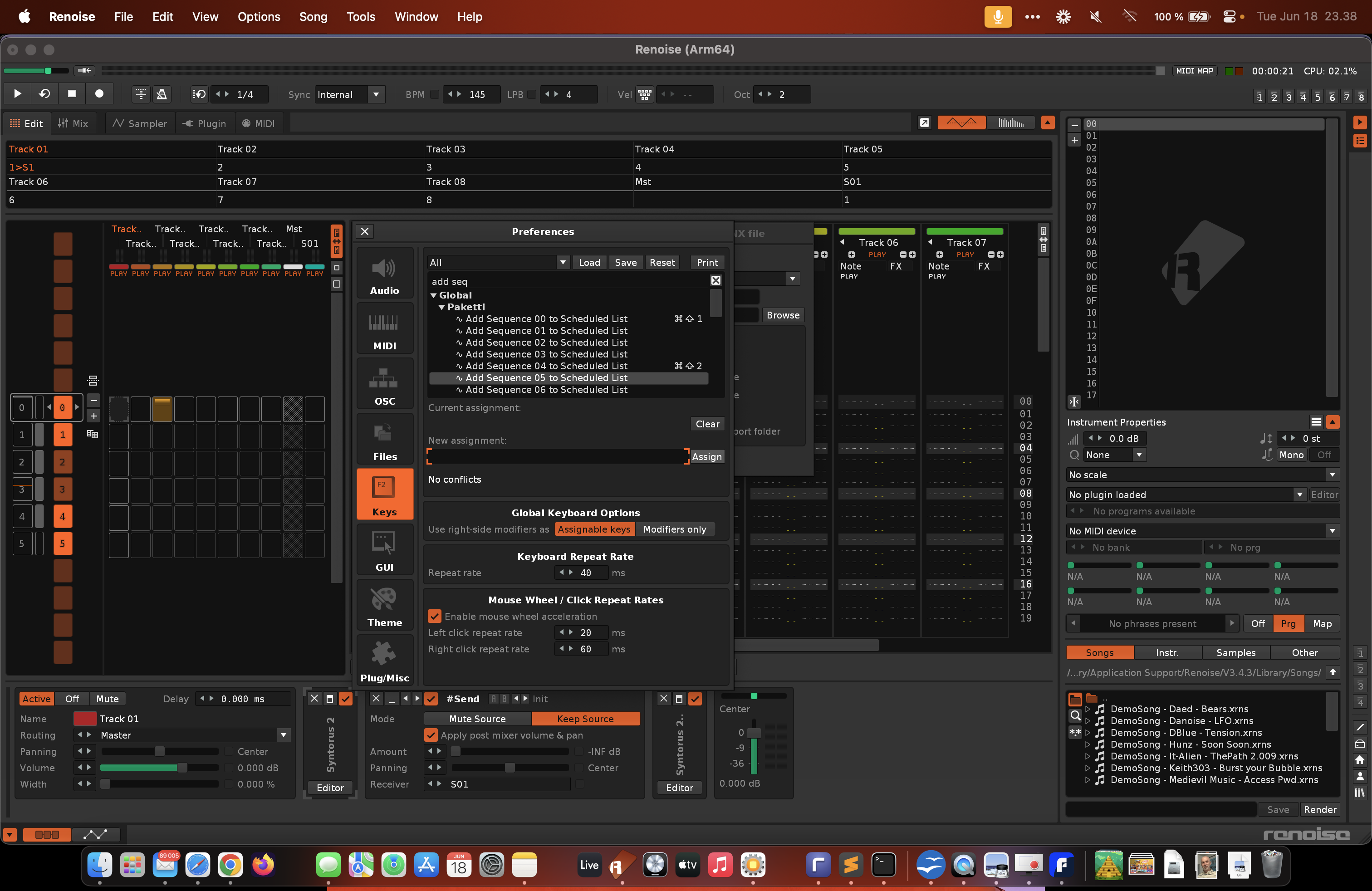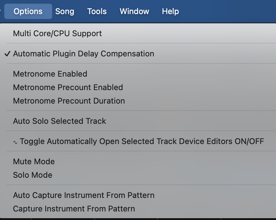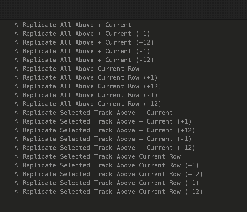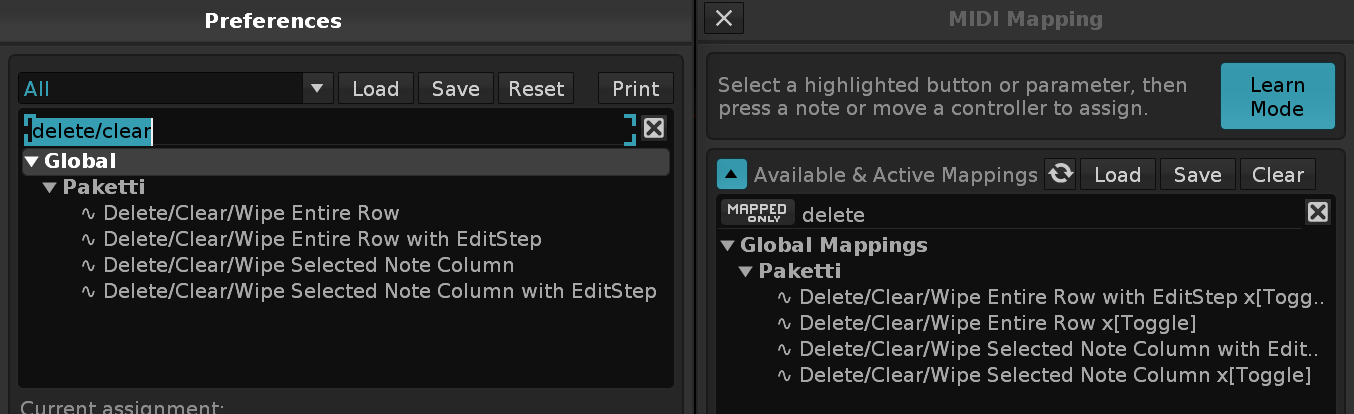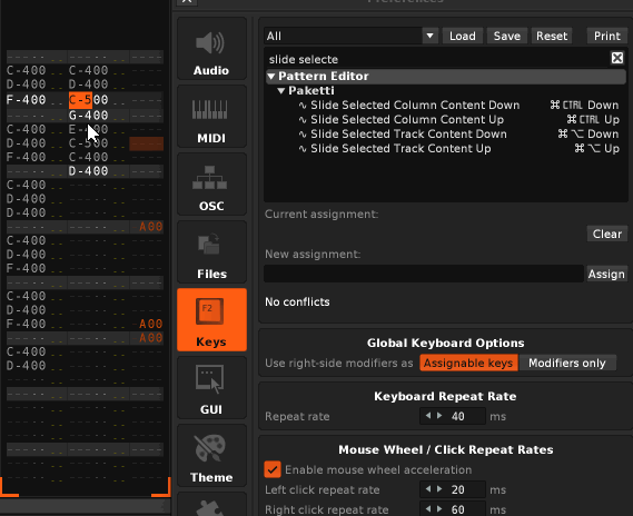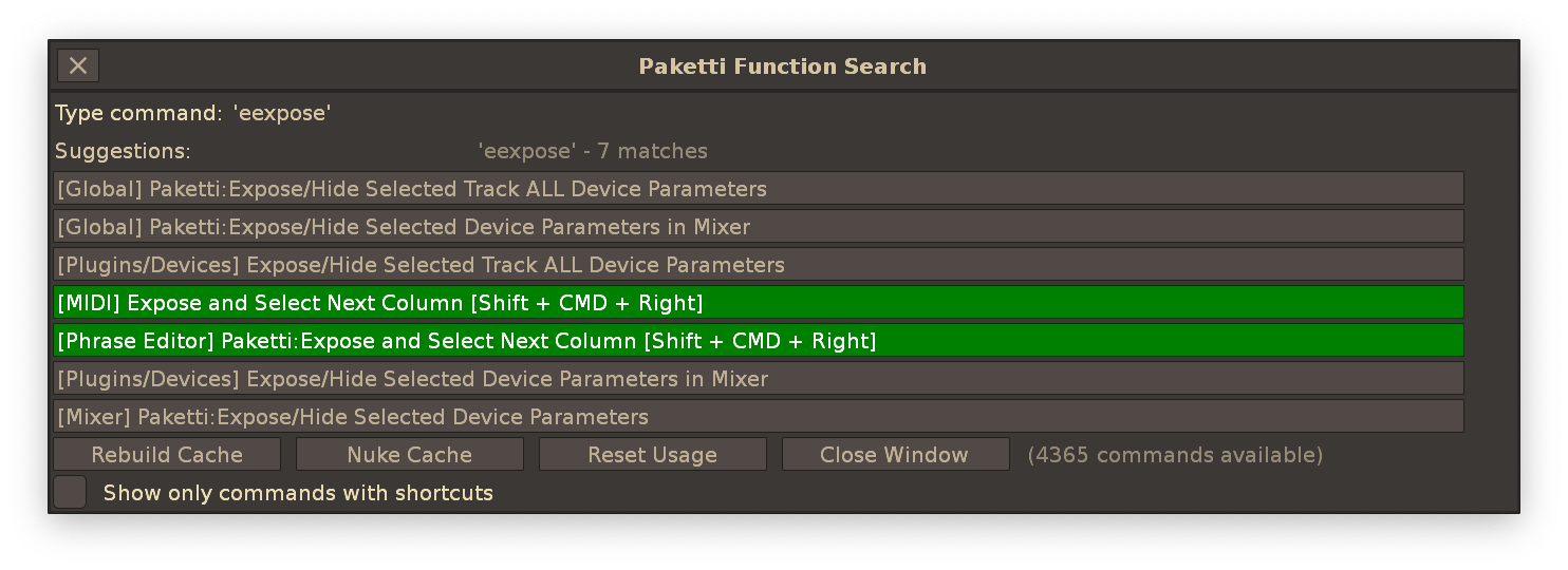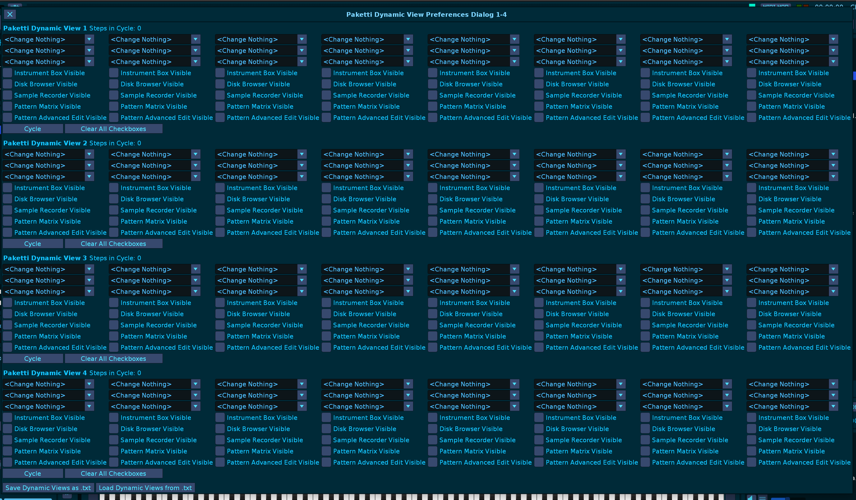 Global:Paketti:Toggle Metronome PrecountPaketti:Toggle Metronome PrecountGlobal:Paketti:Enable Metronome PrecountGlobal:Paketti:Disable Metronome PrecountPaketti:Enable Metronome PrecountPaketti:Disable Metronome PrecountGlobal:Paketti:Toggle Mute/Unmute All TracksPaketti:Toggle Mute/Unmute All TracksGlobal:Paketti:Toggle Mute/Unmute Remembered TracksPaketti:Toggle Mute/Unmute Remembered TracksGlobal:Paketti:Set EditStep & Quantization to 00 through ...to 32Global:Paketti:Increase EditStep & Quantization by 1Global:Paketti:Decrease EditStep & Quantization by 1Global:Paketti:EditStep & Quantization Power of Two AboveGlobal:Paketti:EditStep & Quantization Power of Two BelowPaketti:Set EditStep & Quantization to 00 through ...to 32Paketti:Increase EditStep & Quantization by 1Paketti:Decrease EditStep & Quantization by 1Paketti:EditStep & Quantization Power of Two AbovePaketti:EditStep & Quantization Power of Two BelowPattern Editor:Paketti:Jump to Pattern Fraction 01/02 through 16/16Paketti:Jump to Pattern Fraction 01/02 through 16/16Pattern Editor:Paketti:Save Cursor PositionPattern Editor:Paketti:Jump to Previous PositionGlobal:Paketti:Jump to Previous PositionPaketti:Save Cursor PositionPaketti:Jump to Previous PositionGlobal:Paketti:Move Section Loop (Next)Global:Paketti:Move Section Loop (Previous)Paketti:Move Section Loop (Next)Paketti:Move Section Loop (Previous)Pattern Editor:Paketti:Note Off All Columns in GroupPaketti:Note Off All Columns in GroupPattern Editor:Paketti:Mute Playing Note (Insert Note Off)Paketti:Mute Playing Note (Insert Note Off)Global:Paketti:Clone Sequence Without AutomationPattern Sequencer:Paketti:Clone Sequence Without AutomationPattern Matrix:Paketti:Clone Sequence Without AutomationPaketti:Clone Sequence Without AutomationGlobal:Paketti:Wipe Drumkit Sample FX AssignmentsPaketti:Wipe Drumkit Sample FX AssignmentsPattern Editor:Paketti:Invert Volume OnlyPattern Editor:Paketti:Invert Panning OnlyPattern Editor:Paketti:Invert Delay OnlyPattern Editor:Paketti:Invert Sample FX OnlyPaketti:Invert Volume OnlyPaketti:Invert Panning OnlyPaketti:Invert Delay OnlyPaketti:Invert Sample FX OnlyPattern Editor:Paketti:BPM Switcher Dialog...Paketti:BPM Switcher DialogPattern Editor:Paketti:Write Track Mute (0L00)Pattern Editor:Paketti:Write Track Unmute (0L80)Pattern Editor:Paketti:Write Track Solo via 0L00 (Mute All Others)Pattern Editor:Paketti:Write Track Unsolo via 0L80 (Unmute All)Paketti:Write Track Mute (0L00)Paketti:Write Track Unmute (0L80)Paketti:Write Track Solo via 0L00Paketti:Write Track Unsolo via 0L80Global:Paketti:Step Sequencer FX Randomizer Dialog...Paketti:Pattern Editor:Step Sequencer FX RandomizerMain Menu:Tools:Paketti:Pattern Editor:Step Sequencer FX Randomizer...Pattern Editor:Paketti:Step Sequencer FX Randomizer...Pattern Editor:Paketti:Interpolate Current Subcolumn ValuesPattern Editor:Paketti:Interpolate Column Values (Effect Column)Paketti:Interpolate Current Subcolumn ValuesPaketti:Interpolate Column Values (Effect Column)Pattern Editor:Paketti:Fill Effect Column Between NotesPattern Editor:Paketti:Fill Sample Effects Between NotesPaketti:Fill Effect Column Between NotesPaketti:Fill Sample Effects Between NotesPattern Editor:Paketti:Play Next Note LinePattern Editor:Paketti:Play Previous Note LinePaketti:Play Next Note LinePaketti:Play Previous Note LinePattern Editor:Paketti:Clever Note Off Wipe & Replace (Right After)Pattern Editor:Paketti:Clever Note Off Wipe & Replace (Right Before)Pattern Editor:Paketti:Clever Note Off Wipe & Replace (Half Before)Paketti:Clever Note Off Wipe & Replace (Right After)Paketti:Clever Note Off Wipe & Replace (Right Before)Paketti:Clever Note Off Wipe & Replace (Half Before)Pattern Editor:Paketti:Clever Note Off Delay +1Pattern Editor:Paketti:Clever Note Off Delay -1Pattern Editor:Paketti:Clever Note Off Delay +10Pattern Editor:Paketti:Clever Note Off Delay -10Paketti:Clever Note Off Delay +1Paketti:Clever Note Off Delay -1Paketti:Clever Note Off Delay +10Paketti:Clever Note Off Delay -10Pattern Editor:Paketti:Clever Note Off Reset DelayPaketti:Clever Note Off Reset DelayPattern Editor:Paketti:OctaMED Note Echo Dialog...Paketti:OctaMED Note Echo DialogPakettiSetEditStepAndQuantization() forcing quantize enabled when changing values. Now saves and restores the record_quantize_enabled state so changing EditStep/Quantization values no longer toggles quantize on/off. Status bar shows enabled state: EditStep: 8, Quantize: 8 (On) or (Off).Global:Paketti:Increase EditStep & Quantization by 1, Global:Paketti:Decrease EditStep & Quantization by 1, Global:Paketti:EditStep & Quantization Power of Two Above/Below, Global:Paketti:Set EditStep & Quantization to 00 through 32nudge_with_delay() now sets delay_column_visible = true for ALL tracks in the selection, not just the currently selected track.Pattern Editor:Paketti:Nudge with Delay (Down), Pattern Editor:Paketti:Nudge with Delay (Up)Pattern Editor:Paketti:Interpolate Column Values Exponential (Volume), Pattern Editor:Paketti:Interpolate Column Values Exponential (Panning), Pattern Editor:Paketti:Interpolate Column Values Exponential (Delay), Pattern Editor:Paketti:Interpolate Column Values Exponential (Sample FX), Pattern Editor:Paketti:Interpolate Column Values Exponential (Effect Column), Pattern Editor:Paketti:Interpolate Current Subcolumn Values ExponentialPaketti:Interpolate Column Values Exponential (...)Pattern Editor:Paketti:Jump to Pattern Position Dialog...Paketti:Jump to Pattern Position DialogGlobal:Paketti:Clone and Expand Pattern to LPB*2 (existing, now handles large patterns)visible_note_columns to match (minimum 1). Cleans up tracks with excess empty columns.Global:Paketti:Remove Unused Note ColumnsPaketti:Remove Unused Note ColumnsMain Menu:Tools:Paketti:Pattern Editor:Remove Unused Note ColumnsGlobal:Paketti:Remove Unused Effect ColumnsPaketti:Remove Unused Effect ColumnsMain Menu:Tools:Paketti:Pattern Editor:Remove Unused Effect ColumnsGlobal:Paketti:Re