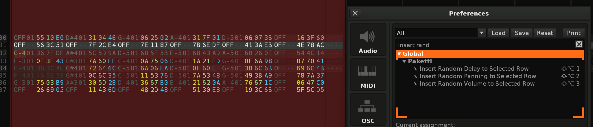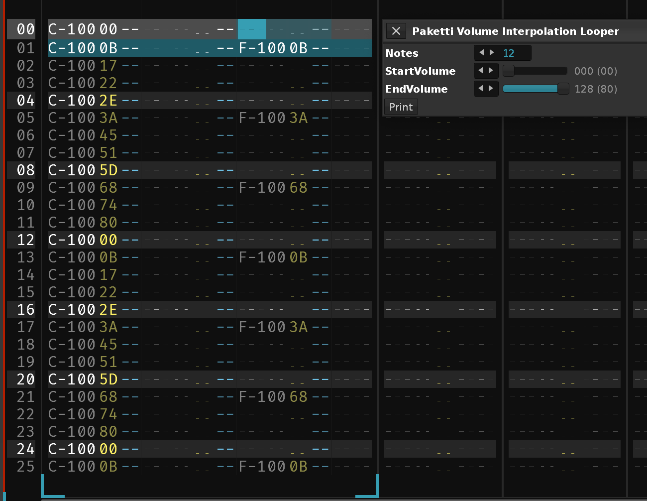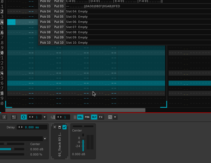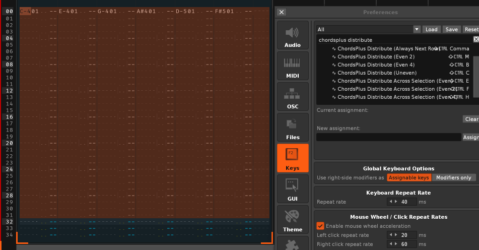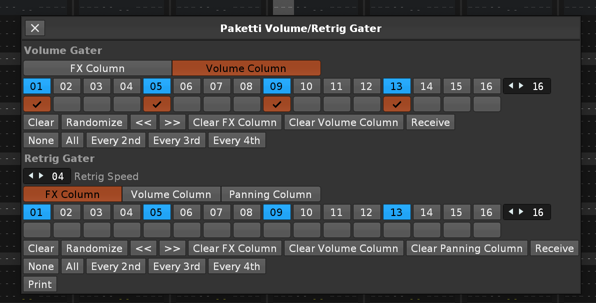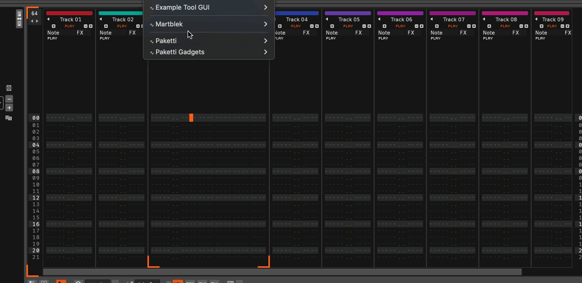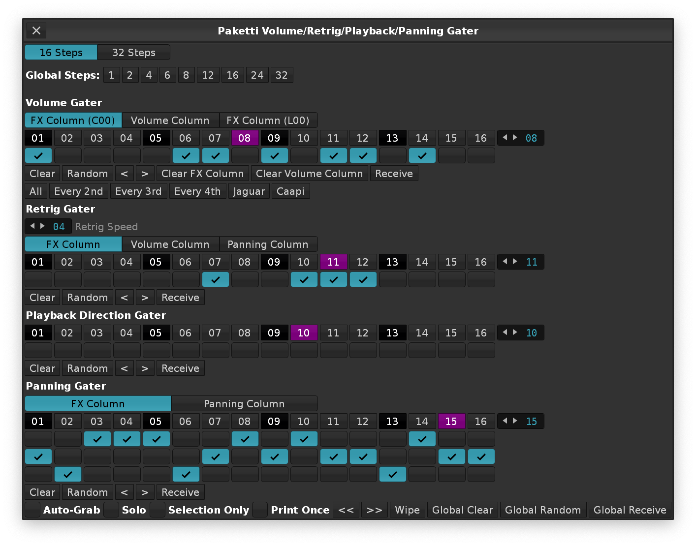 This will let you have the dialog open, play notes on the Computer Keyboard, press enter and the played notes are saved as a chord, which you can then output anywhere. The Smart Note Off feature is also there, adding a Smart Note Off to the end of the pattern. And if you have 4 or 8 chords put to Dump Slots, then you can also spread them across the pattern. I can think of no method that would be as fast - and as dynamic. If you have a 512 row pattern, and have 8 chords, you can slam them in, automatically, without thinking, every 64 rows. 64 row and 4 chords? every 16 steps. If you made an error, you can always use backspace to remove the newest note, or shift-backspace to wipe the whole Currently Pressed Notes. You can modify the Slot Phrasing (shifting them by octaves randomly) or do the very same thing for the current Selected Track's Pattern content for Selected Pattern. And you can access the Paketti Gater directly.