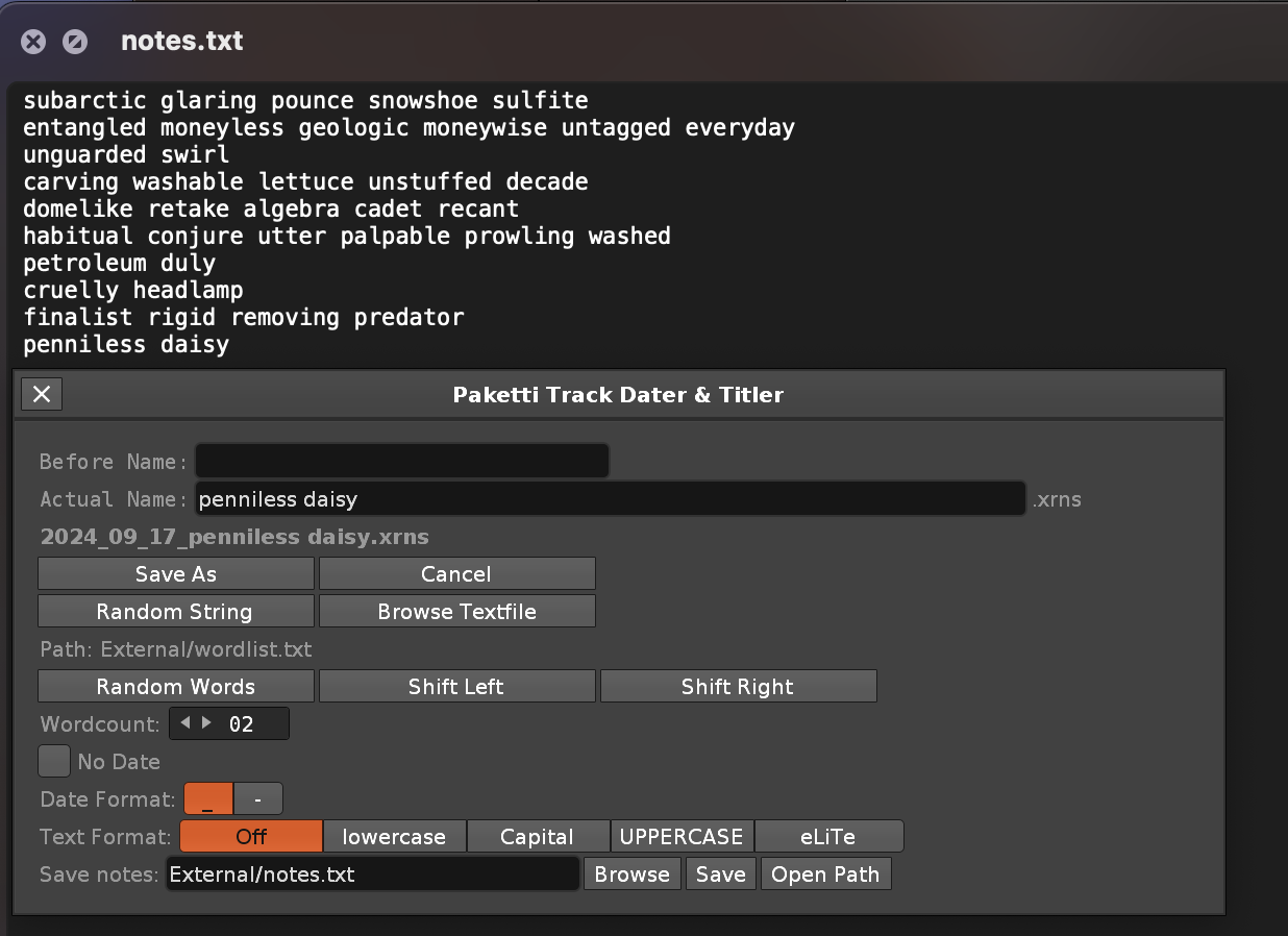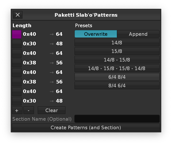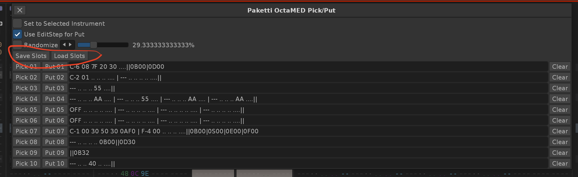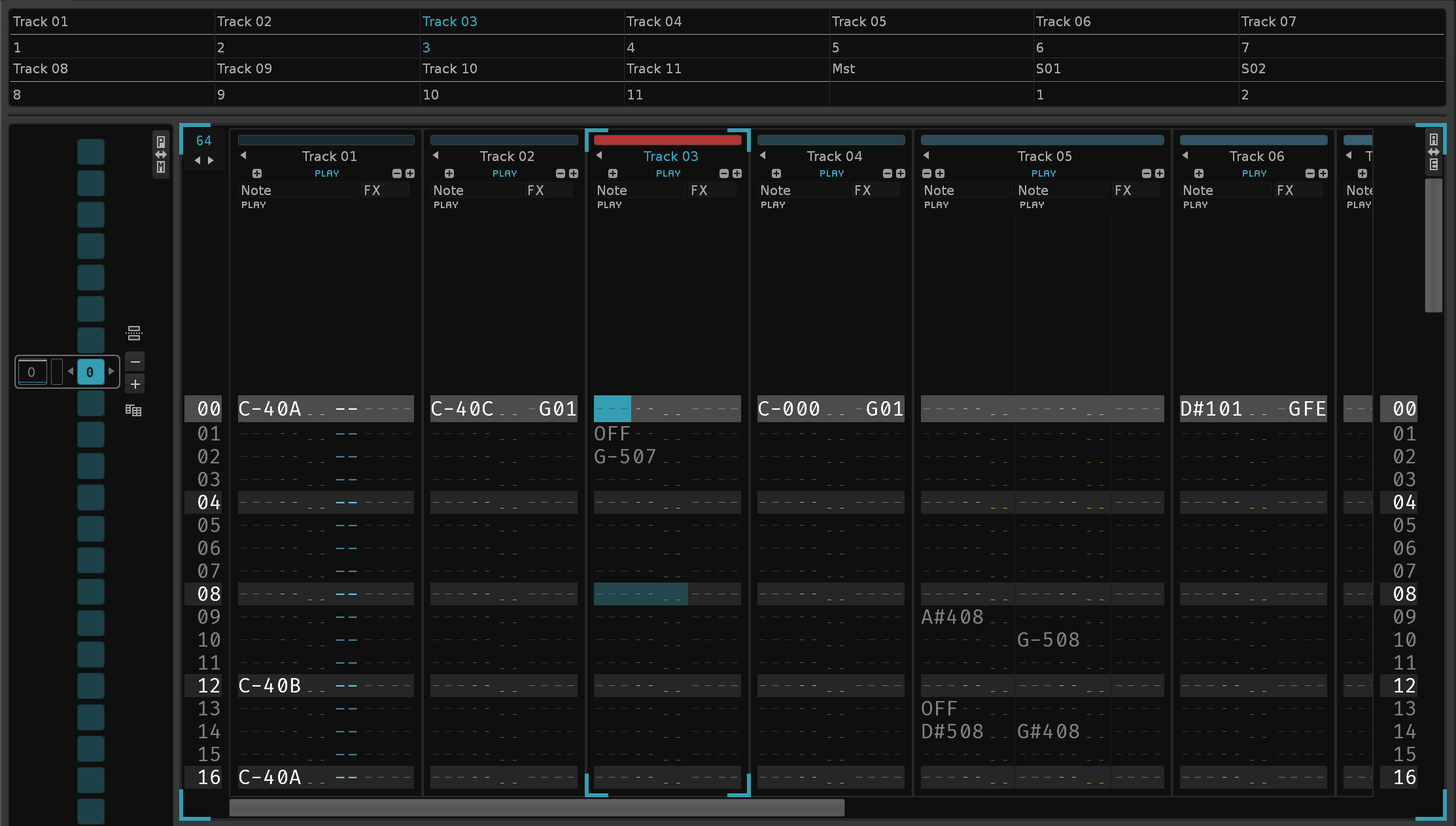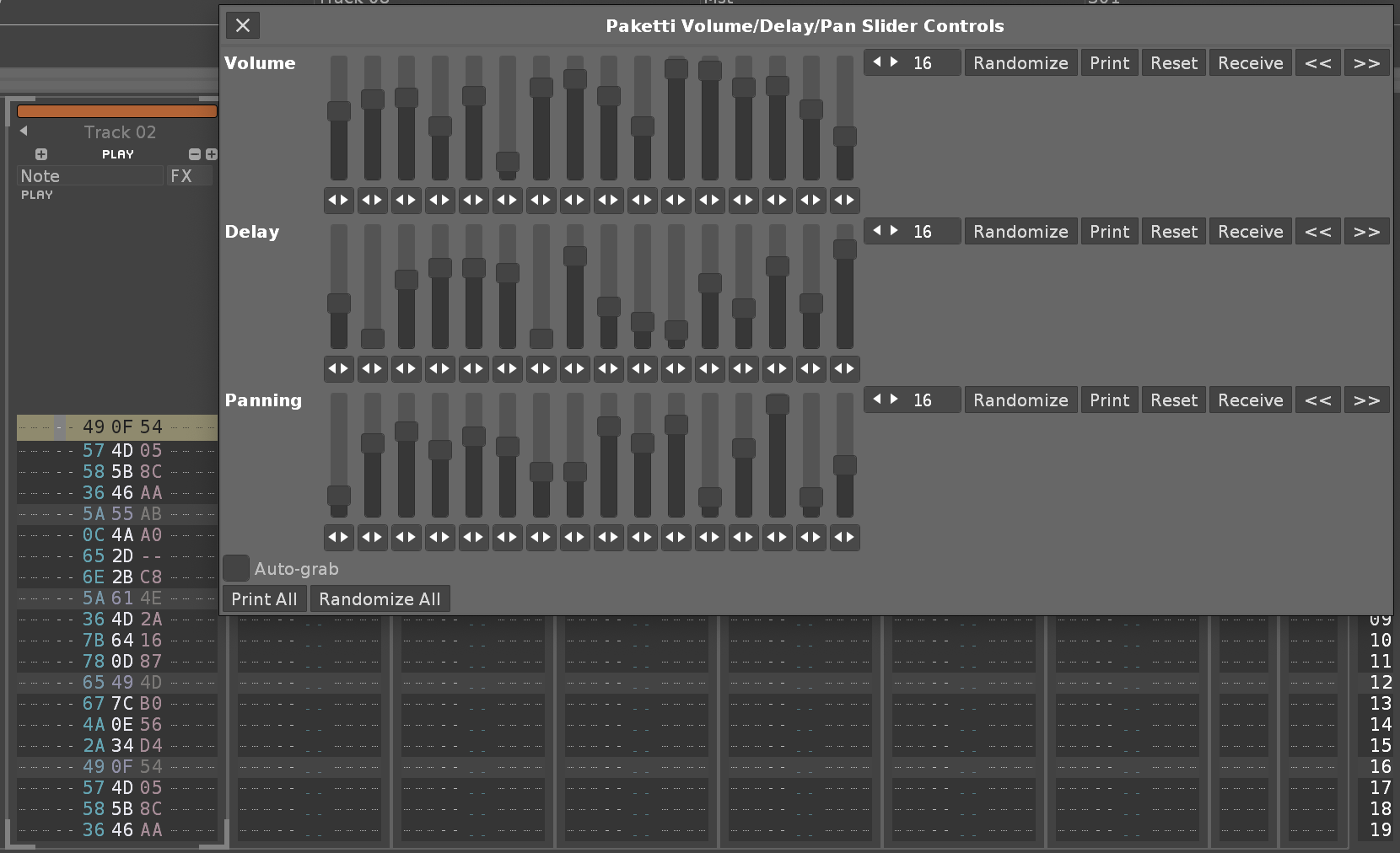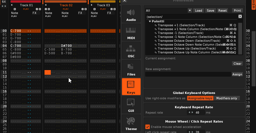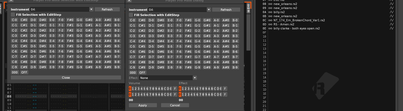 This will let you have the dialog open, play notes on the Computer Keyboard, press enter and the played notes are saved as a chord, which you can then output anywhere. The Smart Note Off feature is also there, adding a Smart Note Off to the end of the pattern. And if you have 4 or 8 chords put to Dump Slots, then you can also spread them across the pattern. I can think of no method that would be as fast - and as dynamic. If you have a 512 row pattern, and have 8 chords, you can slam them in, automatically, without thinking, every 64 rows. 64 row and 4 chords? every 16 steps. If you made an error, you can always use backspace to remove the newest note, or shift-backspace to wipe the whole Currently Pressed Notes. You can modify the Slot Phrasing (shifting them by octaves randomly) or do the very same thing for the current Selected Track's Pattern content for Selected Pattern. And you can access the Paketti Gater directly.
