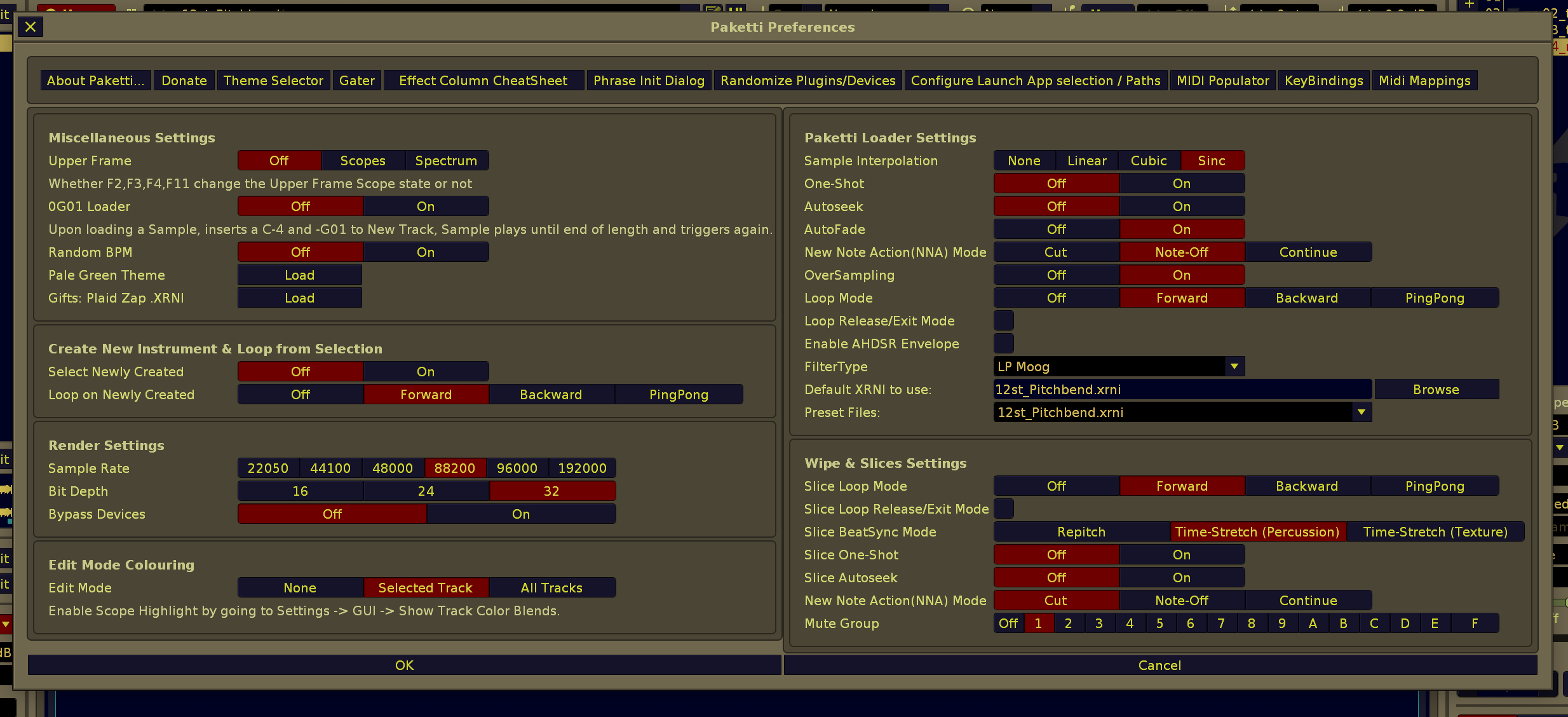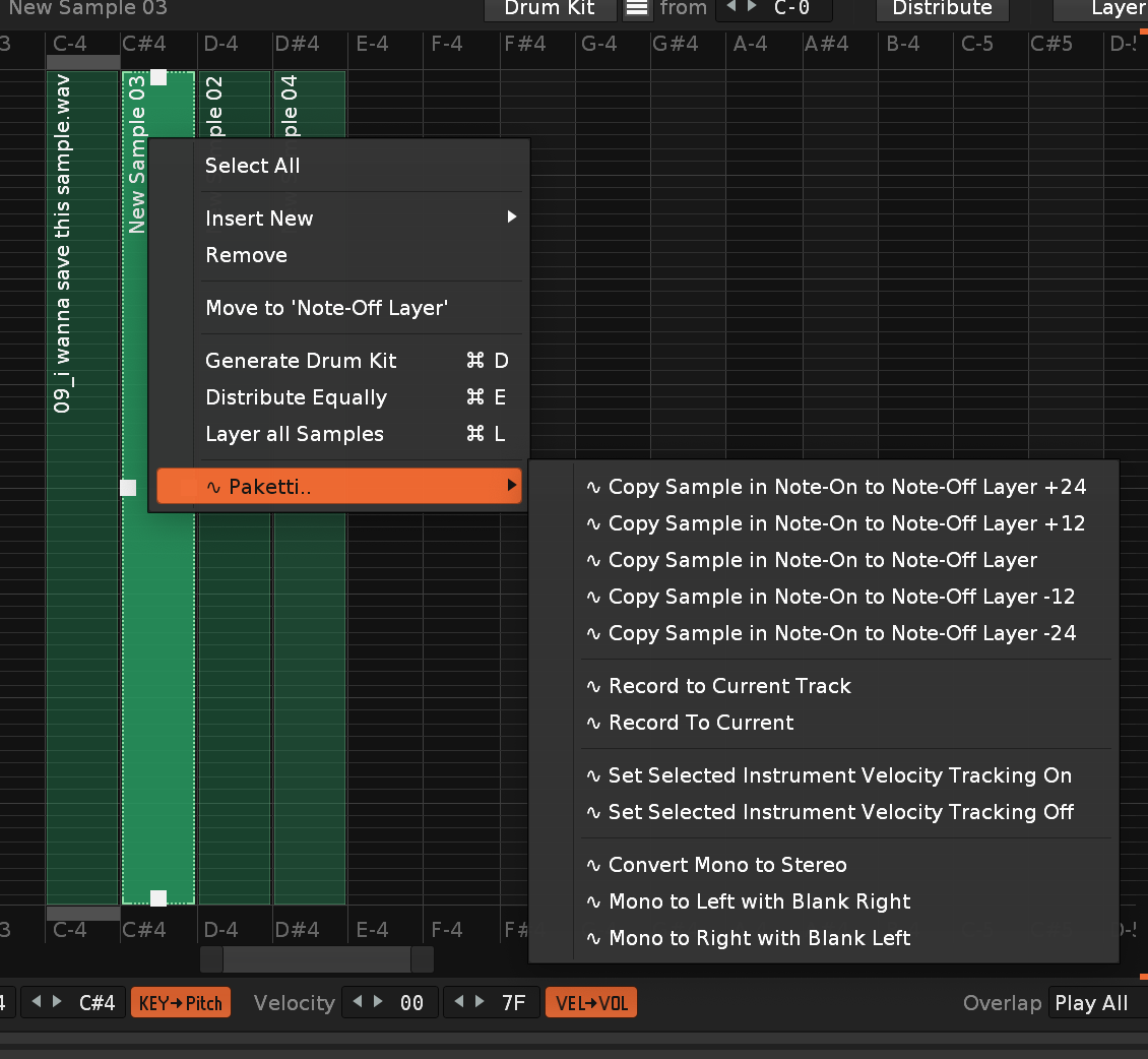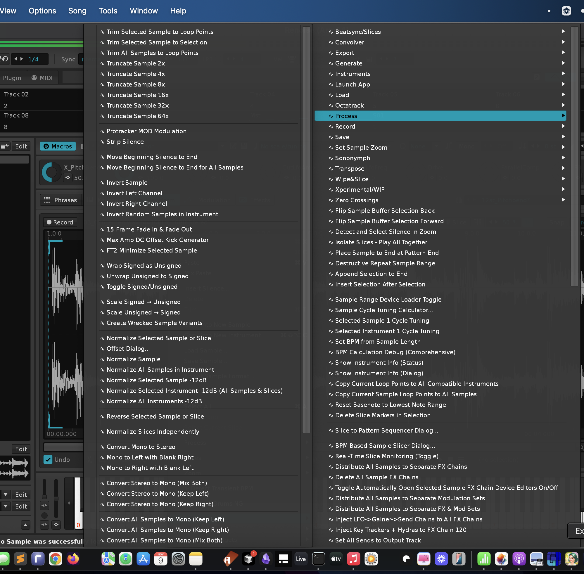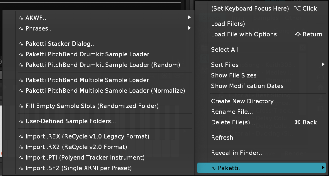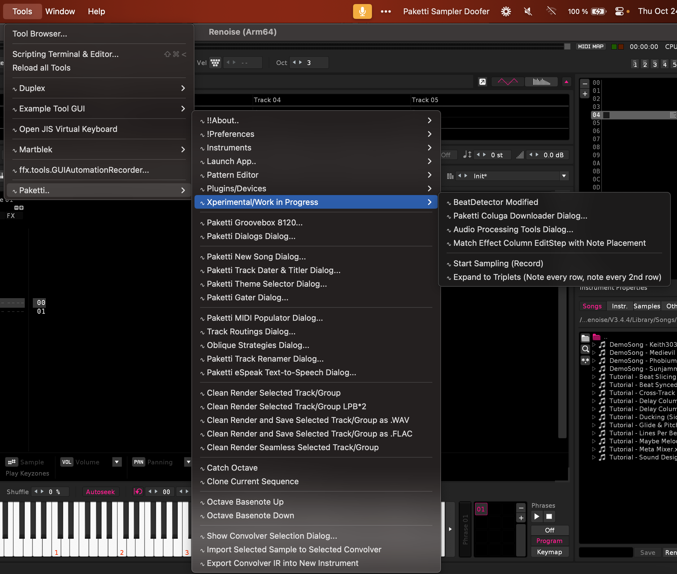 Paketti:Microtonal Tunings:Apply 10-TET Decagono LangePaketti:Microtonal Tunings:Apply Phi 7/10 Hybrid LangePaketti:Microtonal Tunings:Apply Lange Phi Music SystemPaketti:Microtonal Tunings:Phi Harmonic Strings WavetableAdded Trim Selected Sample to Selection and Normalize β a combined operation that first trims the selected sample to the current selection range in the Sample Editor, then immediately normalizes the trimmed result. This is a common two-step workflow now available as a single action.