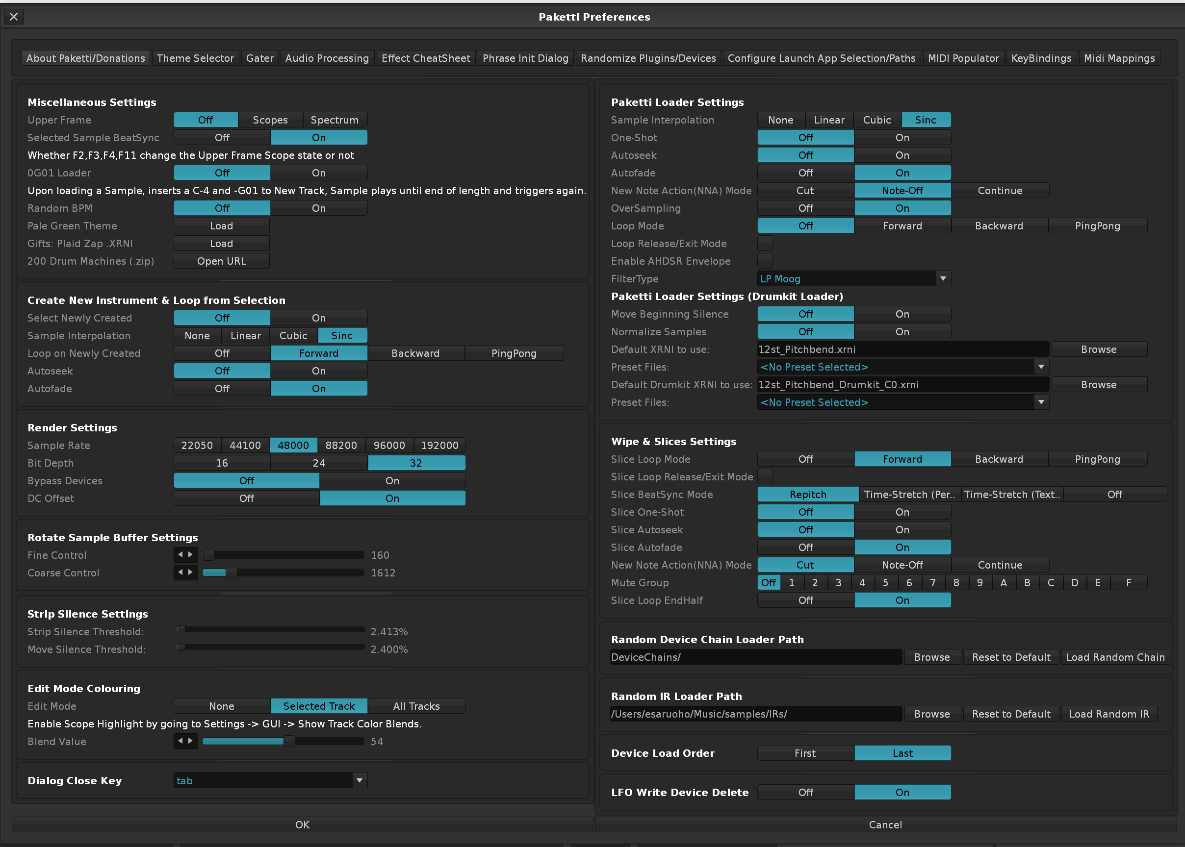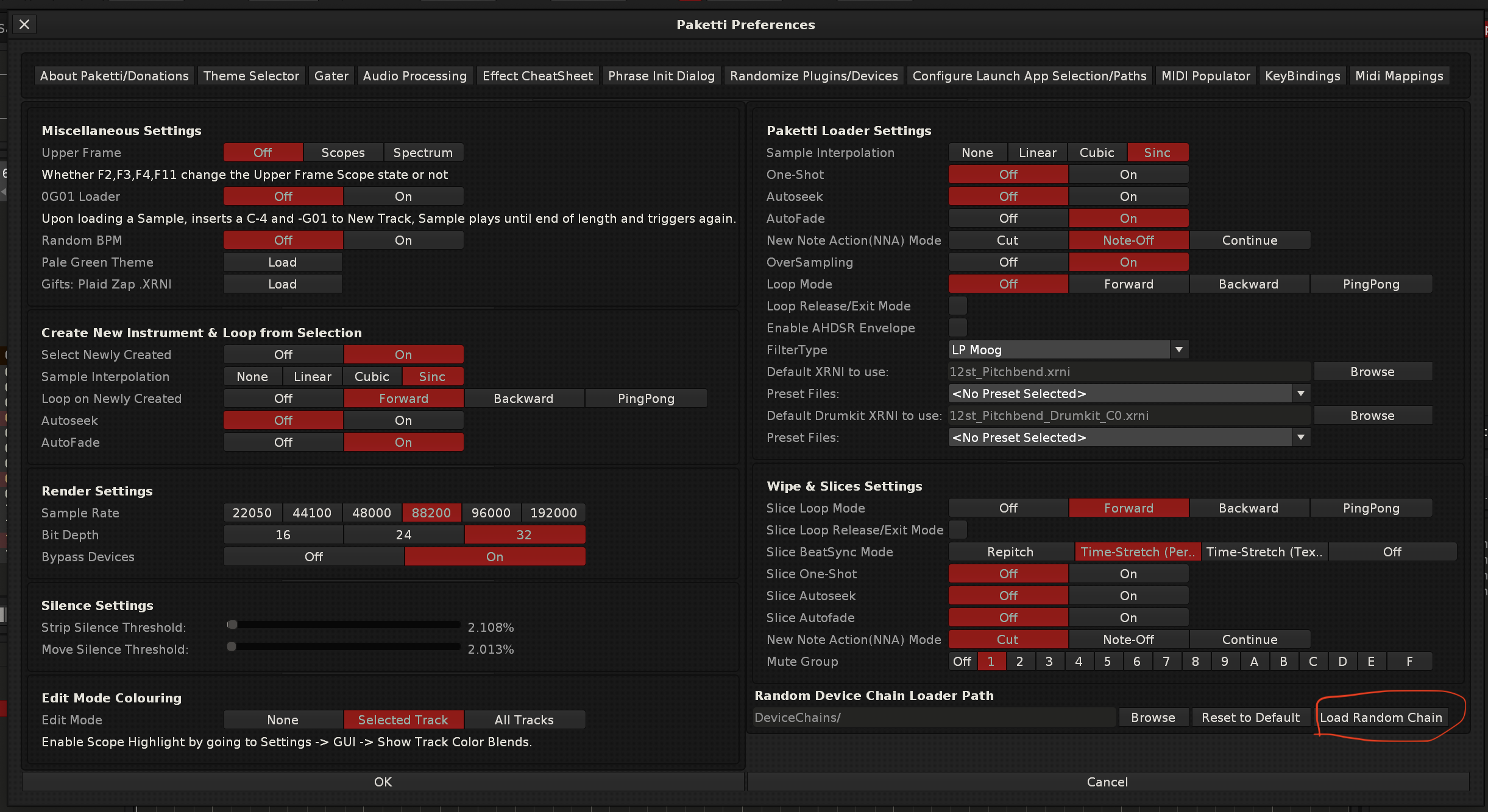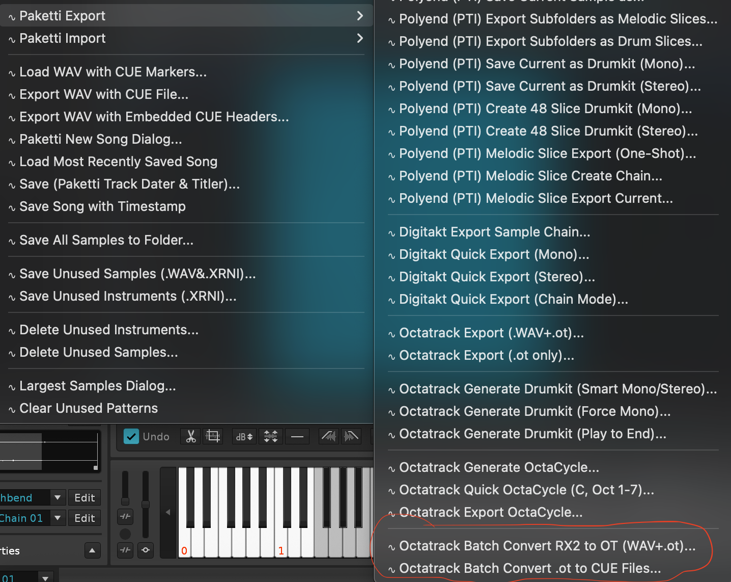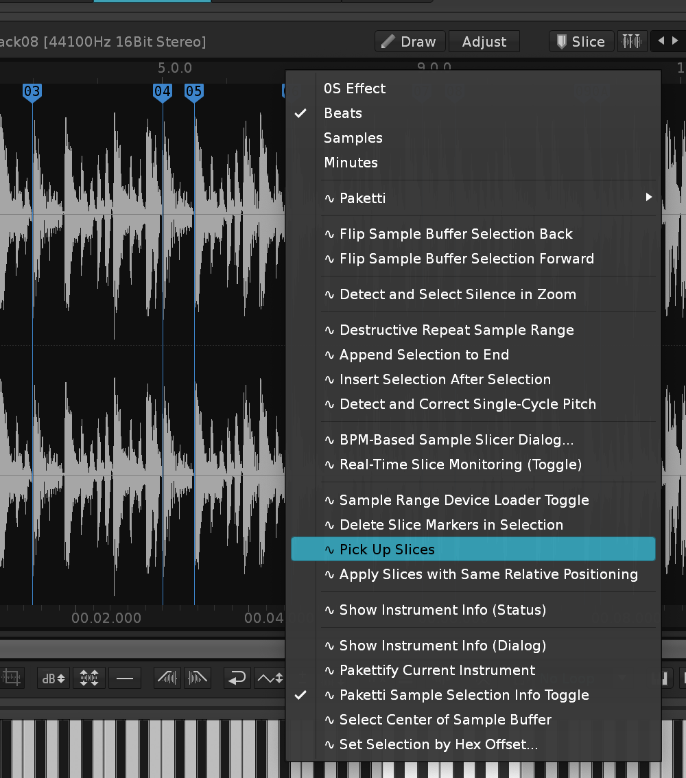 Paketti:Microtonal Tunings:Apply 10-TET Decagono LangePaketti:Microtonal Tunings:Apply Phi 7/10 Hybrid LangePaketti:Microtonal Tunings:Apply Lange Phi Music SystemPaketti:Microtonal Tunings:Phi Harmonic Strings WavetableAdded Trim Selected Sample to Selection and Normalize β a combined operation that first trims the selected sample to the current selection range in the Sample Editor, then immediately normalizes the trimmed result. This is a common two-step workflow now available as a single action.