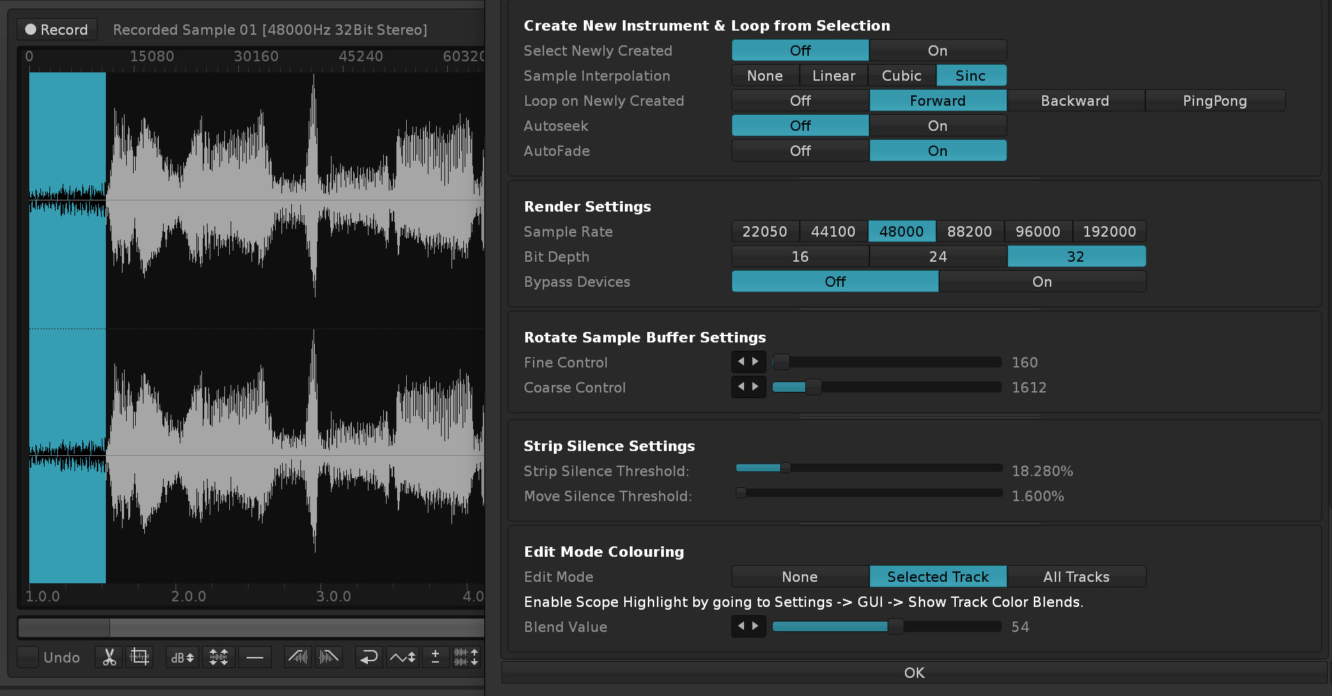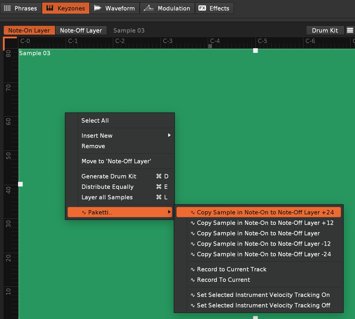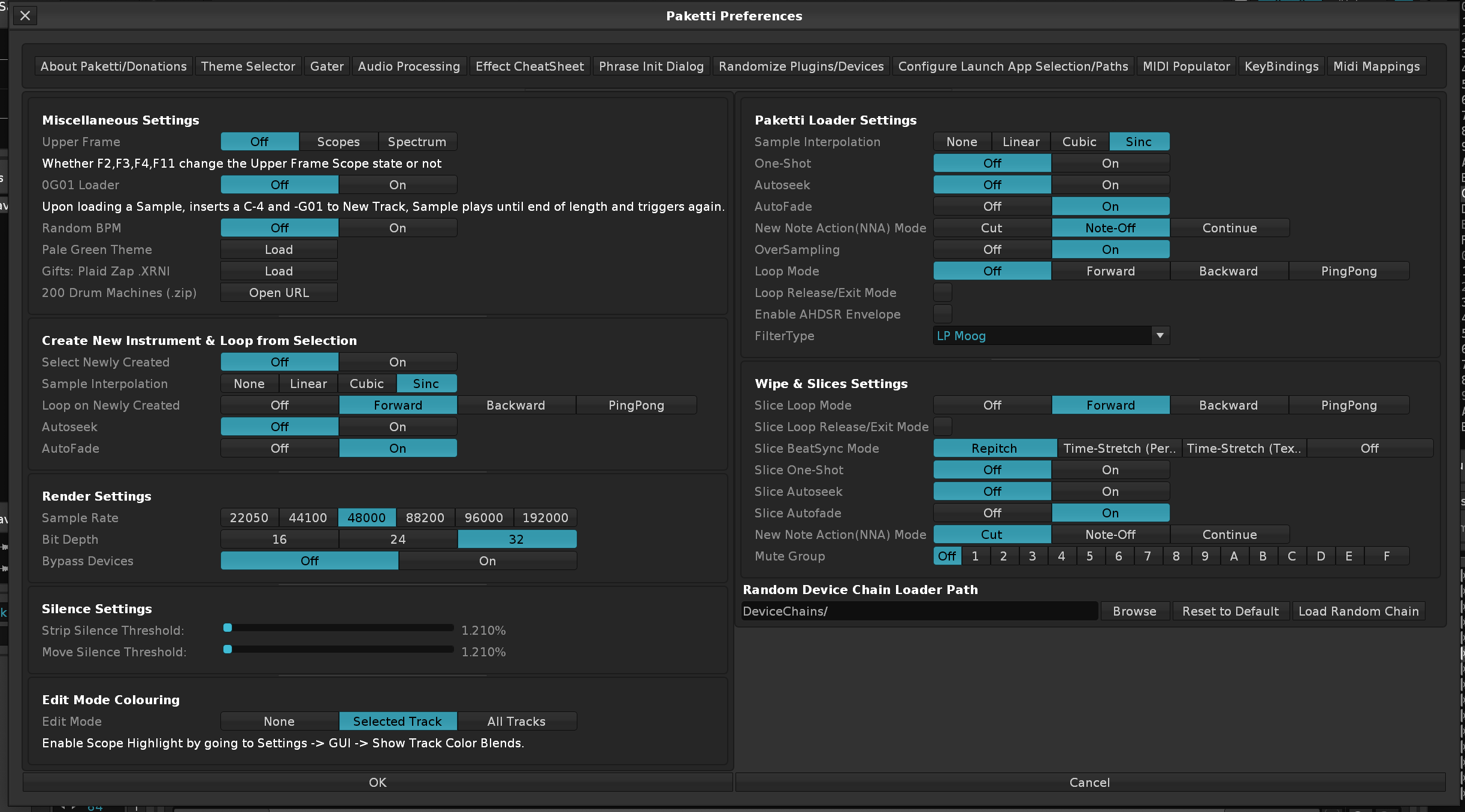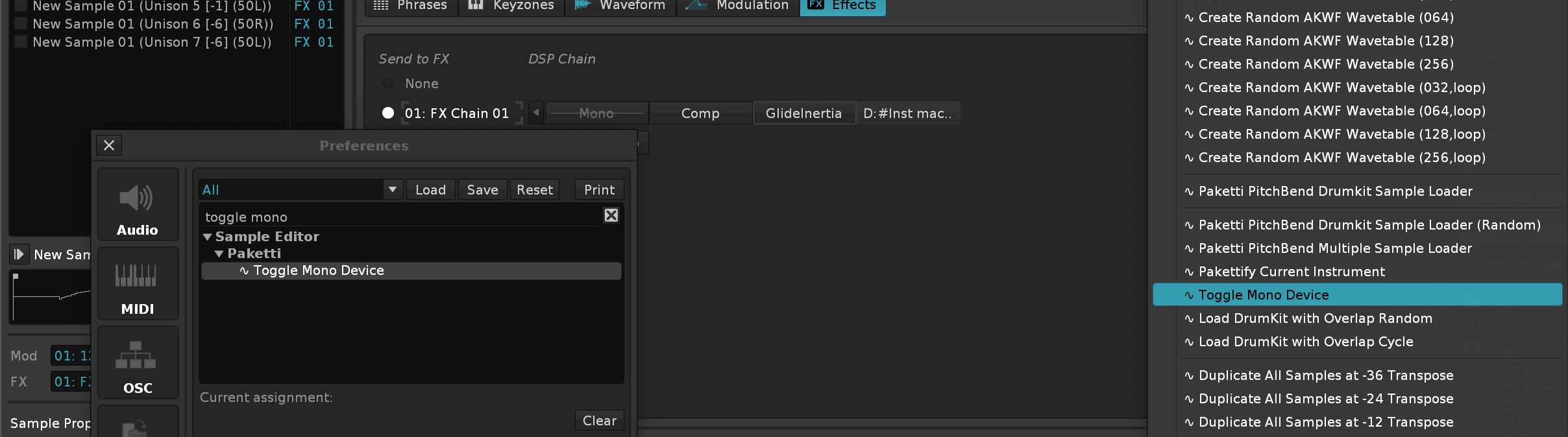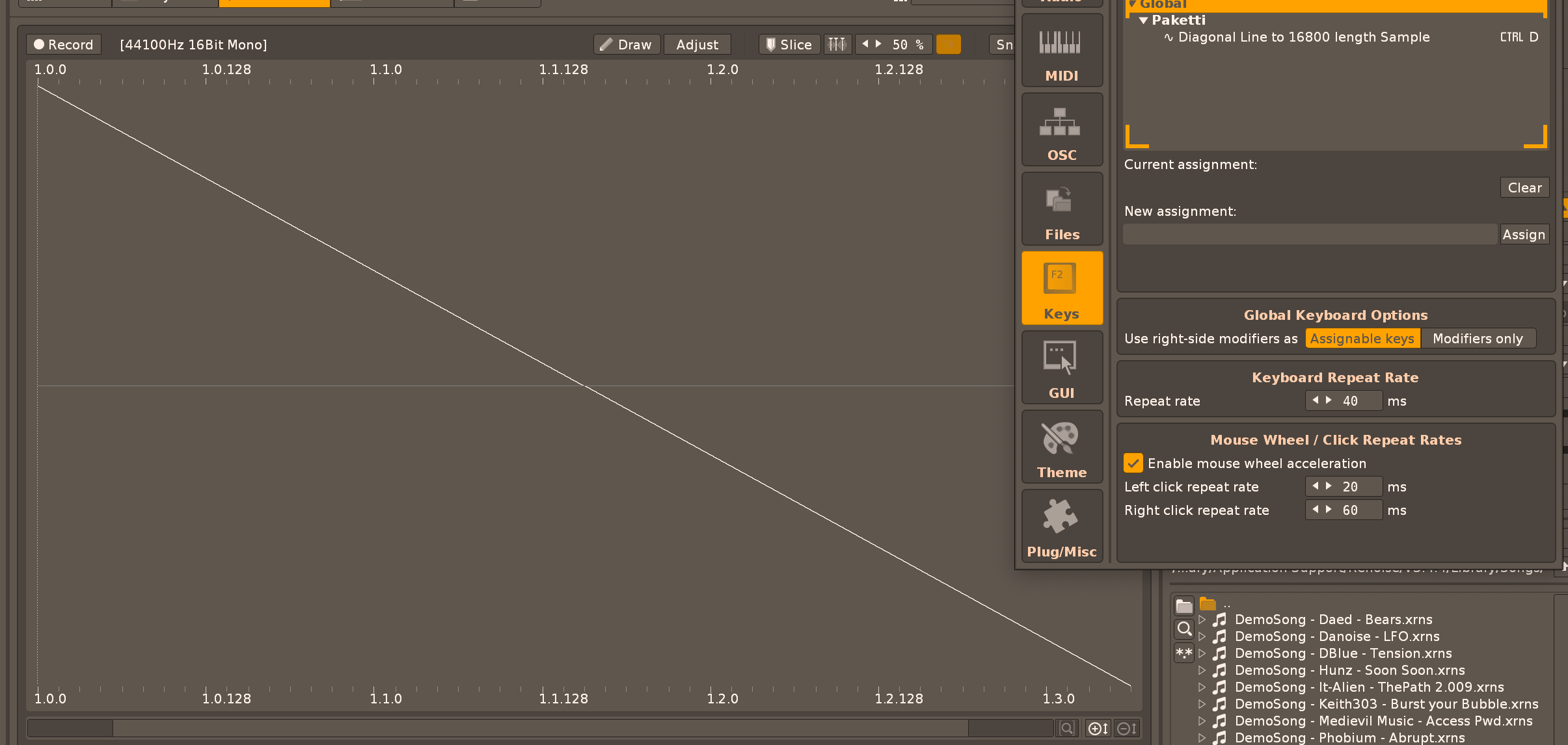 Paketti:Microtonal Tunings:Apply 10-TET Decagono LangePaketti:Microtonal Tunings:Apply Phi 7/10 Hybrid LangePaketti:Microtonal Tunings:Apply Lange Phi Music SystemPaketti:Microtonal Tunings:Phi Harmonic Strings WavetableAdded Trim Selected Sample to Selection and Normalize β a combined operation that first trims the selected sample to the current selection range in the Sample Editor, then immediately normalizes the trimmed result. This is a common two-step workflow now available as a single action.