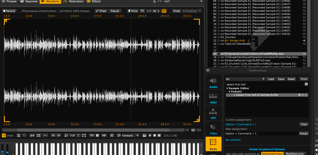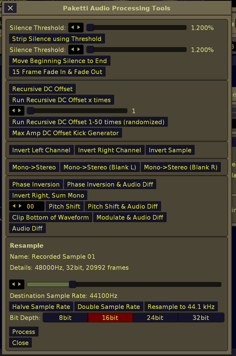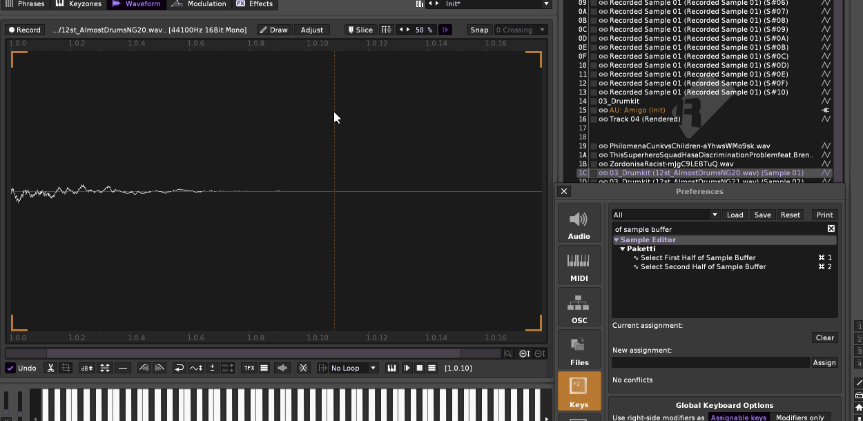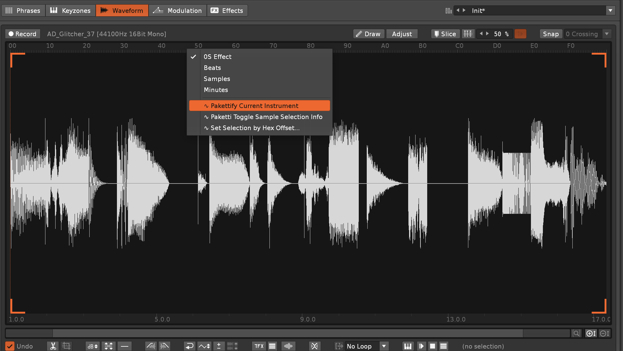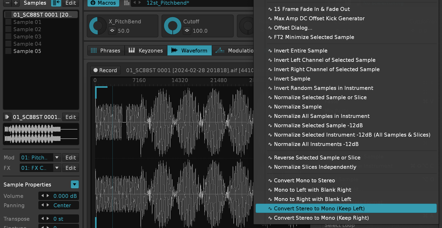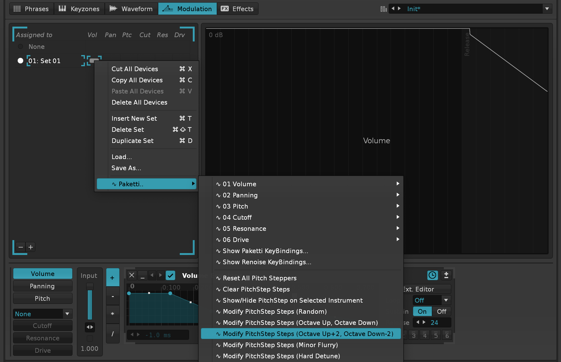 Paketti:Microtonal Tunings:Apply 10-TET Decagono LangePaketti:Microtonal Tunings:Apply Phi 7/10 Hybrid LangePaketti:Microtonal Tunings:Apply Lange Phi Music SystemPaketti:Microtonal Tunings:Phi Harmonic Strings WavetableAdded Trim Selected Sample to Selection and Normalize β a combined operation that first trims the selected sample to the current selection range in the Sample Editor, then immediately normalizes the trimmed result. This is a common two-step workflow now available as a single action.