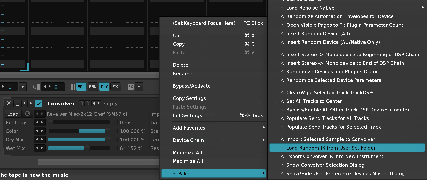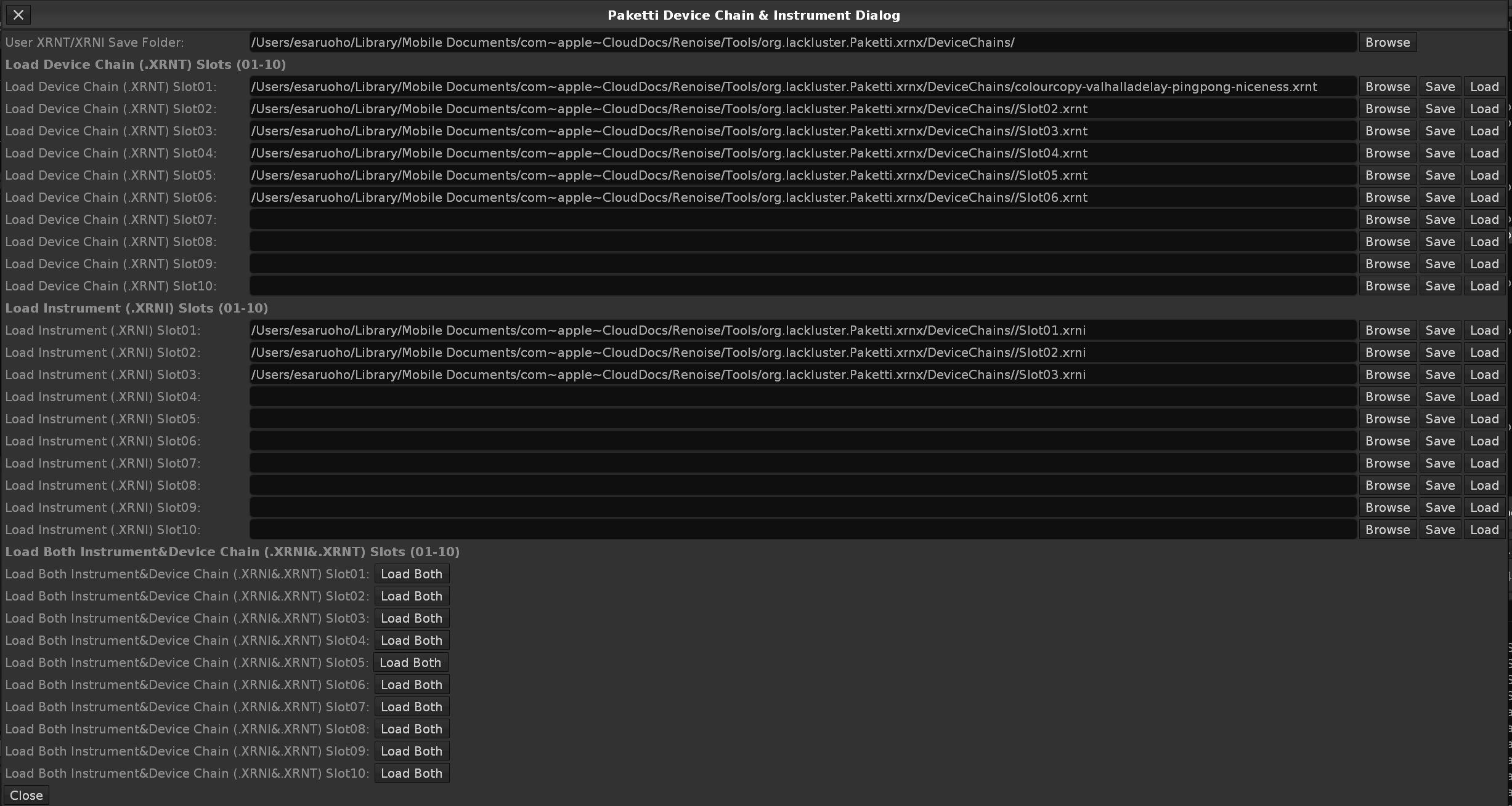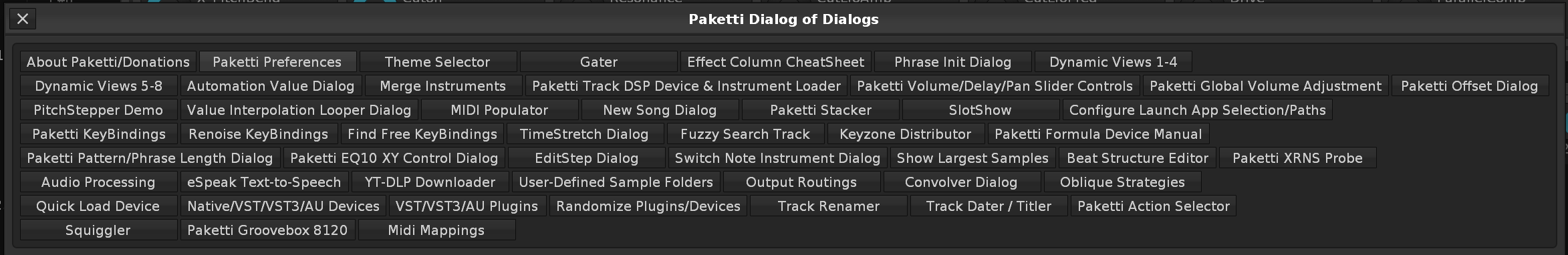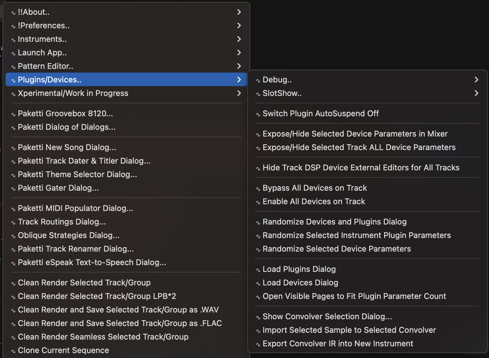 org.lackluster.Paketti_V3.54_TIMESTAMP.xrnx β API 6, Renoise 3.2+org.lackluster.Paketti_V3.54_API5_TIMESTAMP.xrnx β API 5, Renoise 3.1.xDevice chain preset files (.xrdp/.xrnt) that contain v2 DSP devices are now properly gated on Renoise 3.2.
