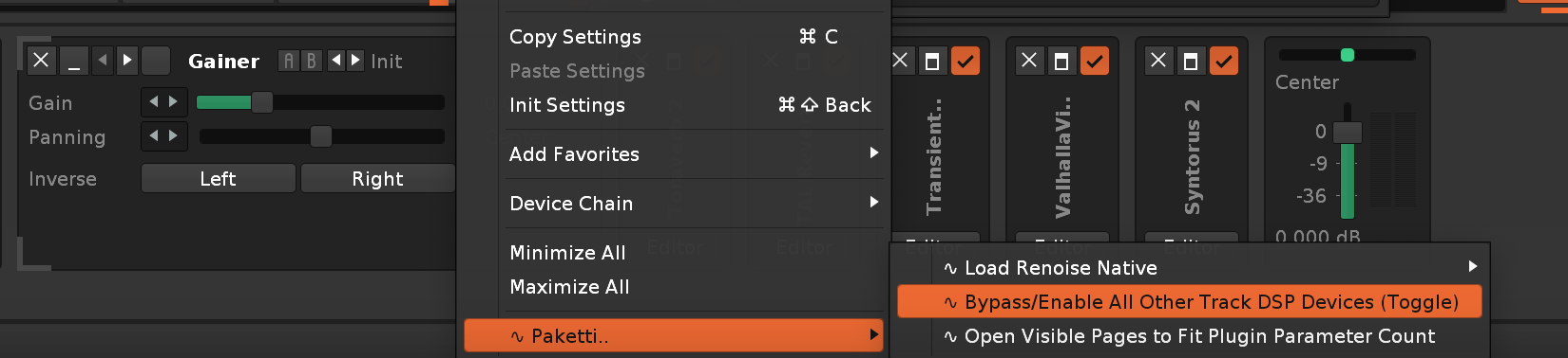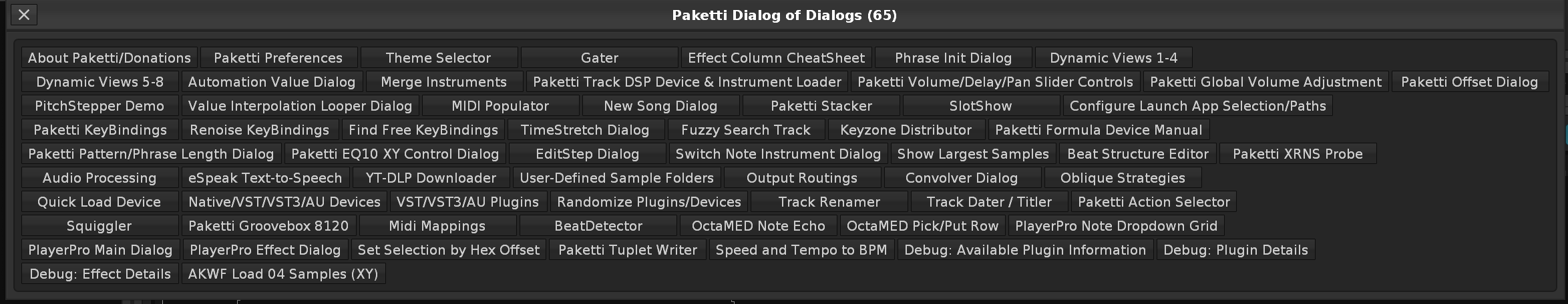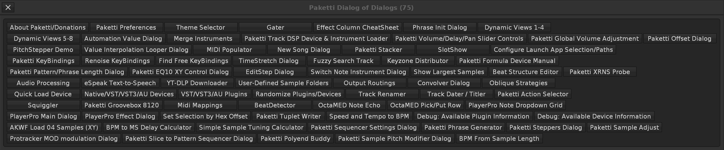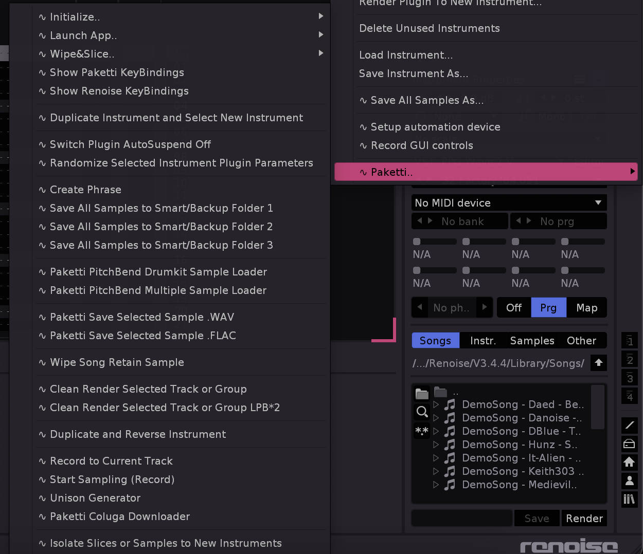 How to use it: Open Tools β Paketti β Paketti Menu Configuration..., uncheck any contexts you don't want (e.g. uncheck "Disk Browser Menus" to remove all Paketti entries from the Disk Browser right-click menu), close the dialog, restart Renoise. The menus will be gone. Every single Paketti menu entry β all 2,200+ of them β now respects these toggles.