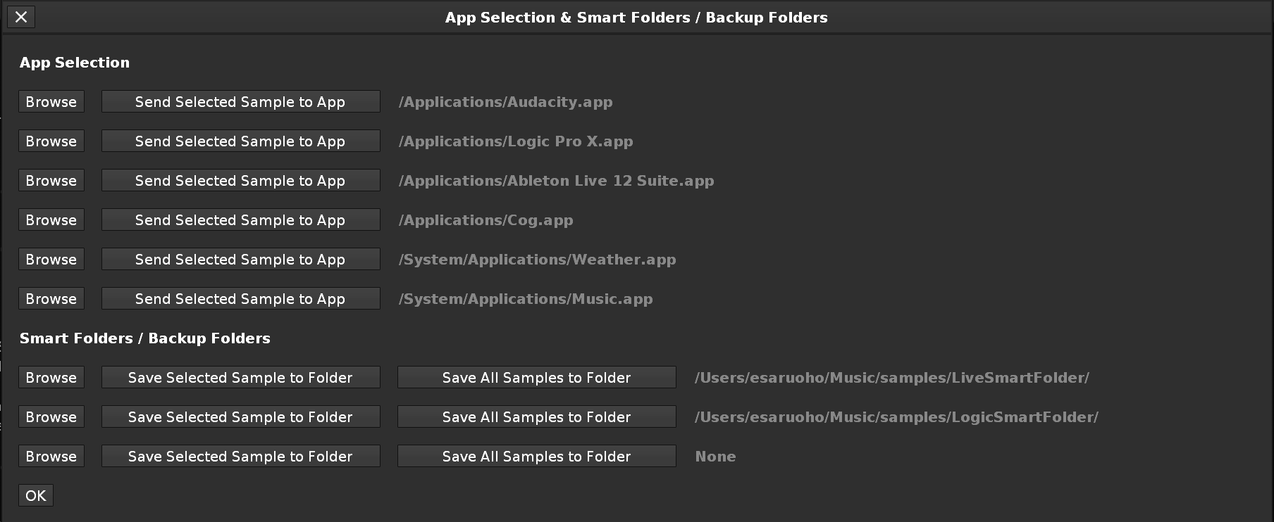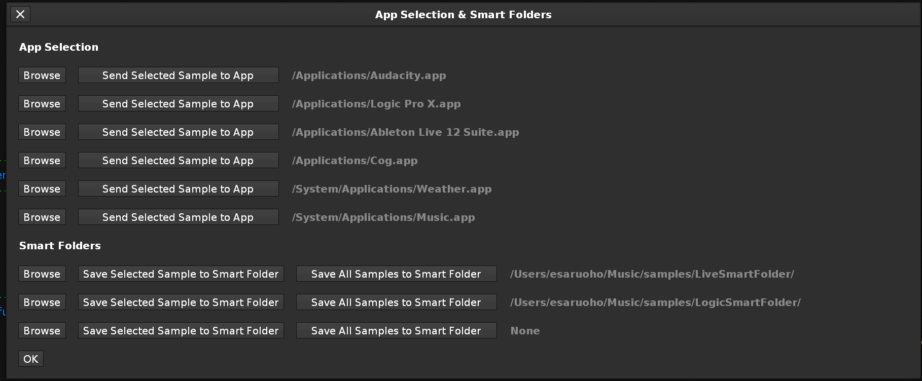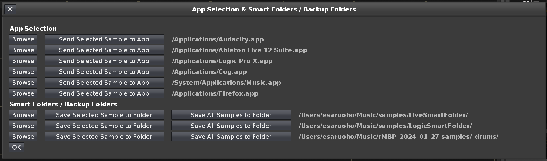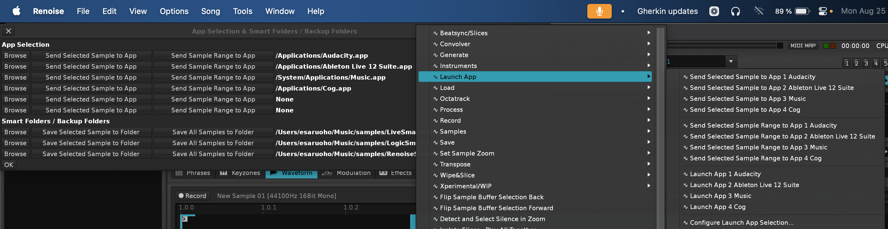 Added Filter Mode to the Launch App system. Each of the 6 app slots can now be toggled to filter mode, allowing CLI tools (sox, ffmpeg, shell scripts) to process samples non-blockingly and return the result as a new instrument or new sample slot.