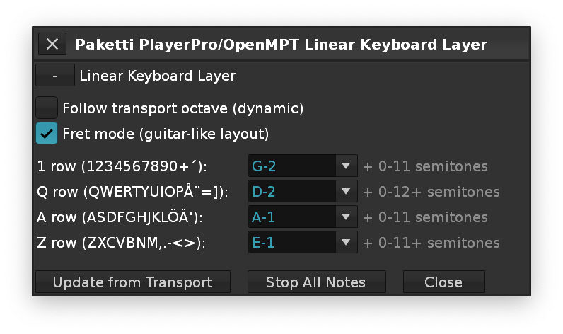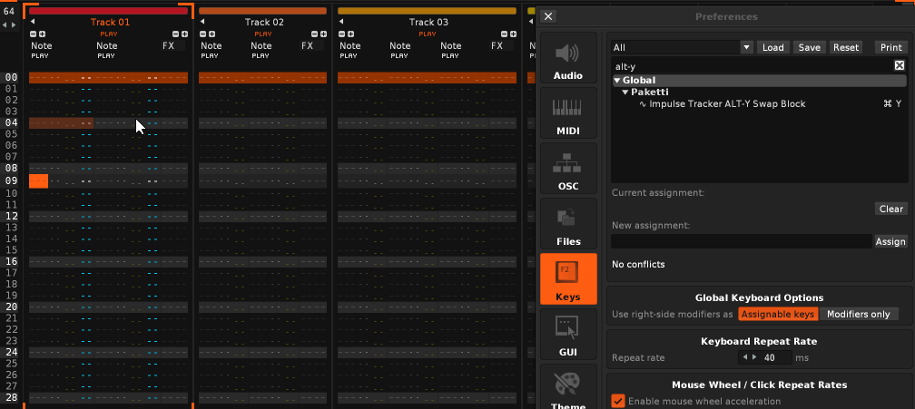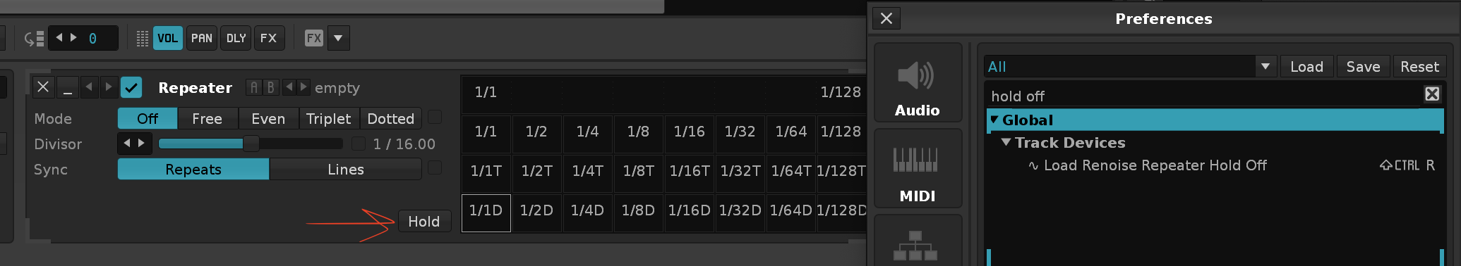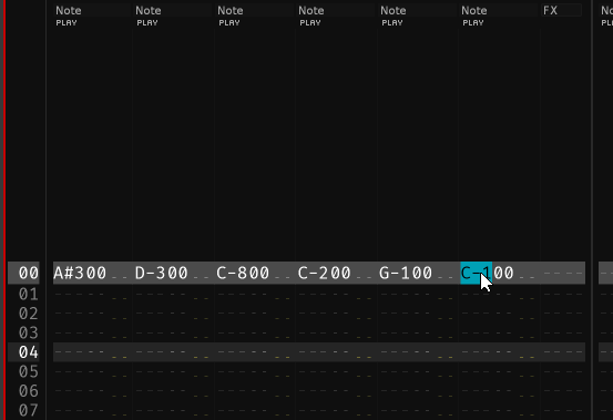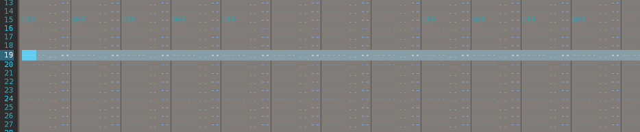 This will: Halt playback and disable Follow Pattern - when triggered. - Stores the Follow Pattern + Row that was playing Then enter a mode of, whichever row your cursor is on, that whole row gets played. After you disable the Audition Mode, returns back to playing from the Row that was stored and re-enable Follow Pattern.