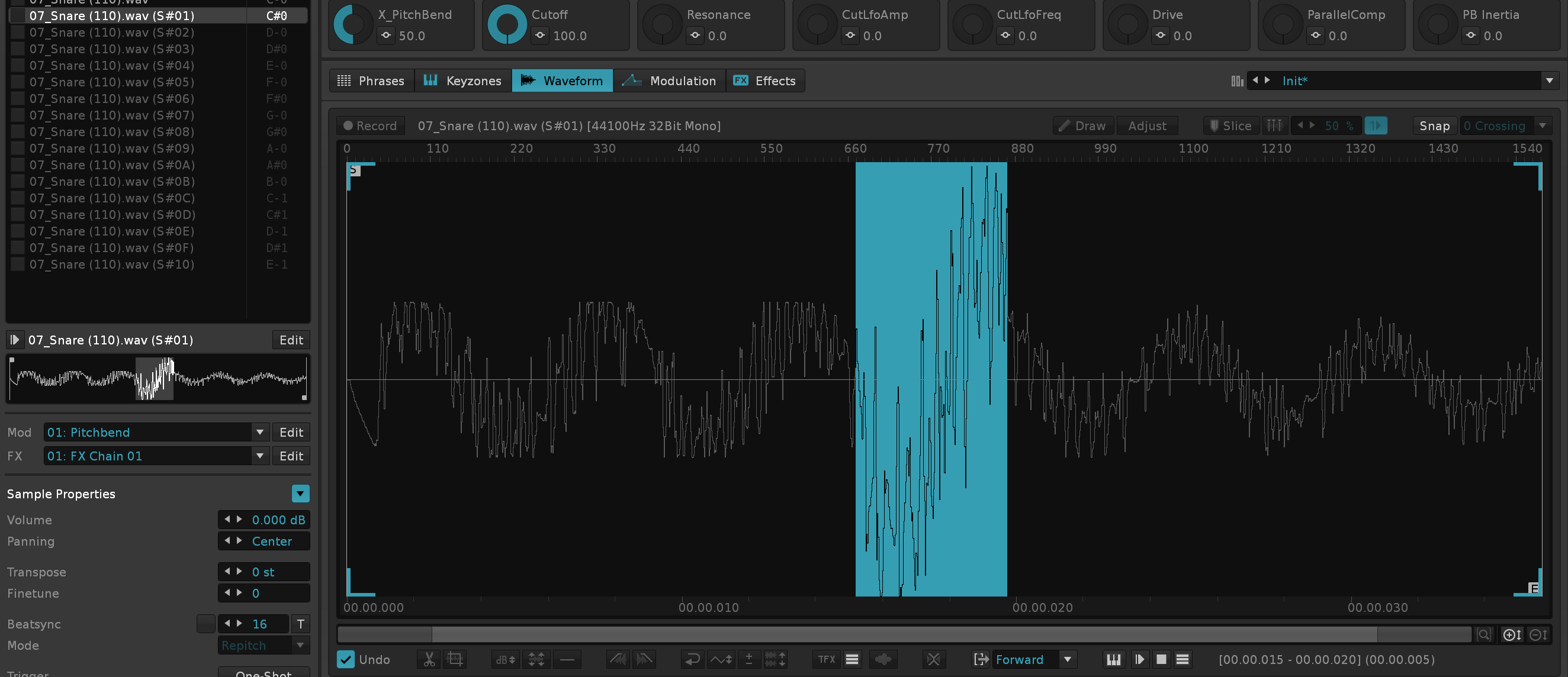 Selecting a row, while on the Sample Editor, while in Sample Offset mode, will dynamically show you where the Sample Offset starts the playback from.