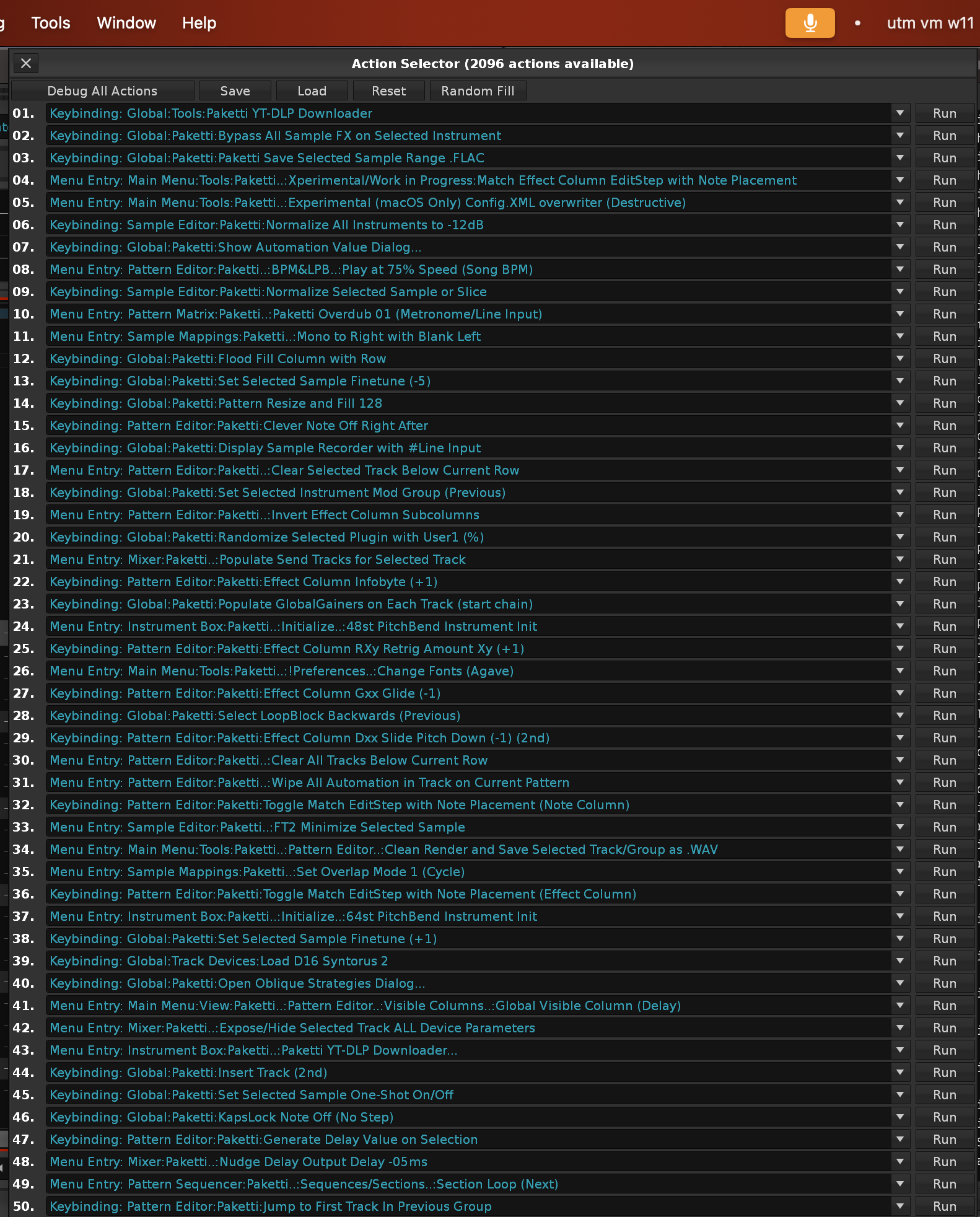 Paketti:Dynamic Macro Toolbar:Trigger Slot 01 through Trigger Slot 10New preferences: PakettiDMTSlot01 through PakettiDMTSlot10 β store the assigned action for each toolbar slot.