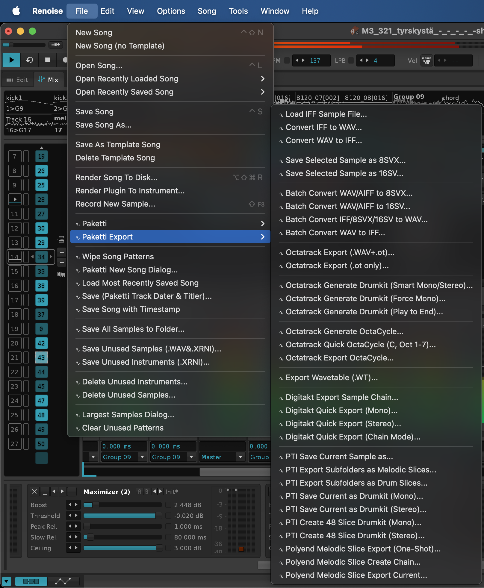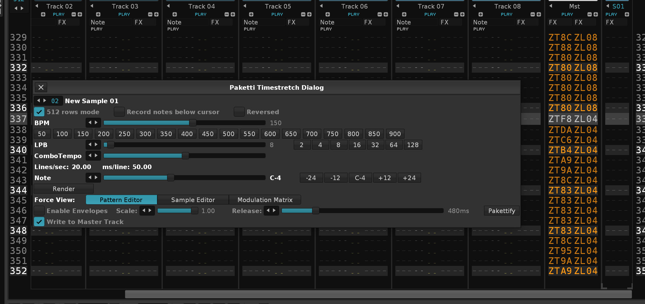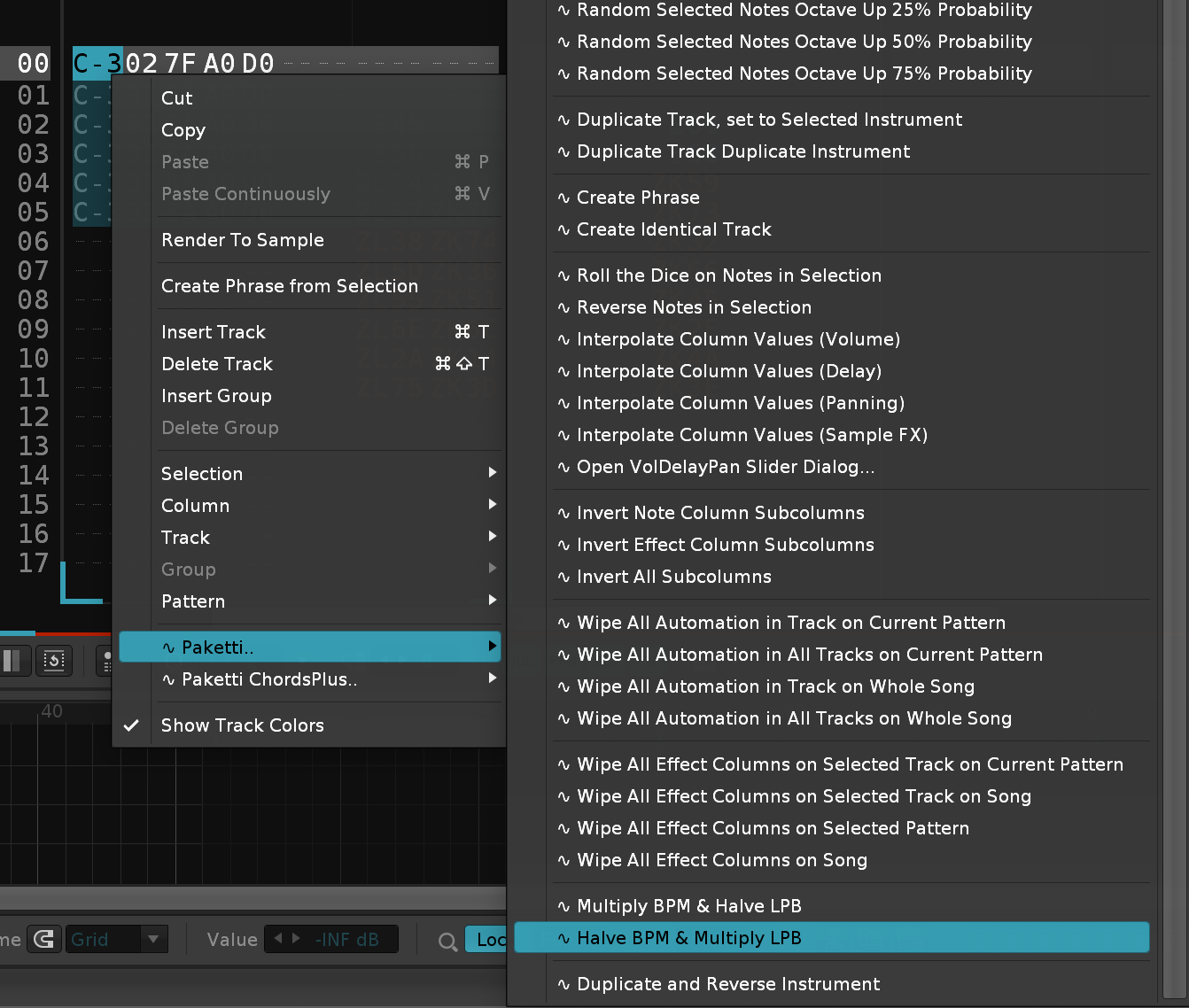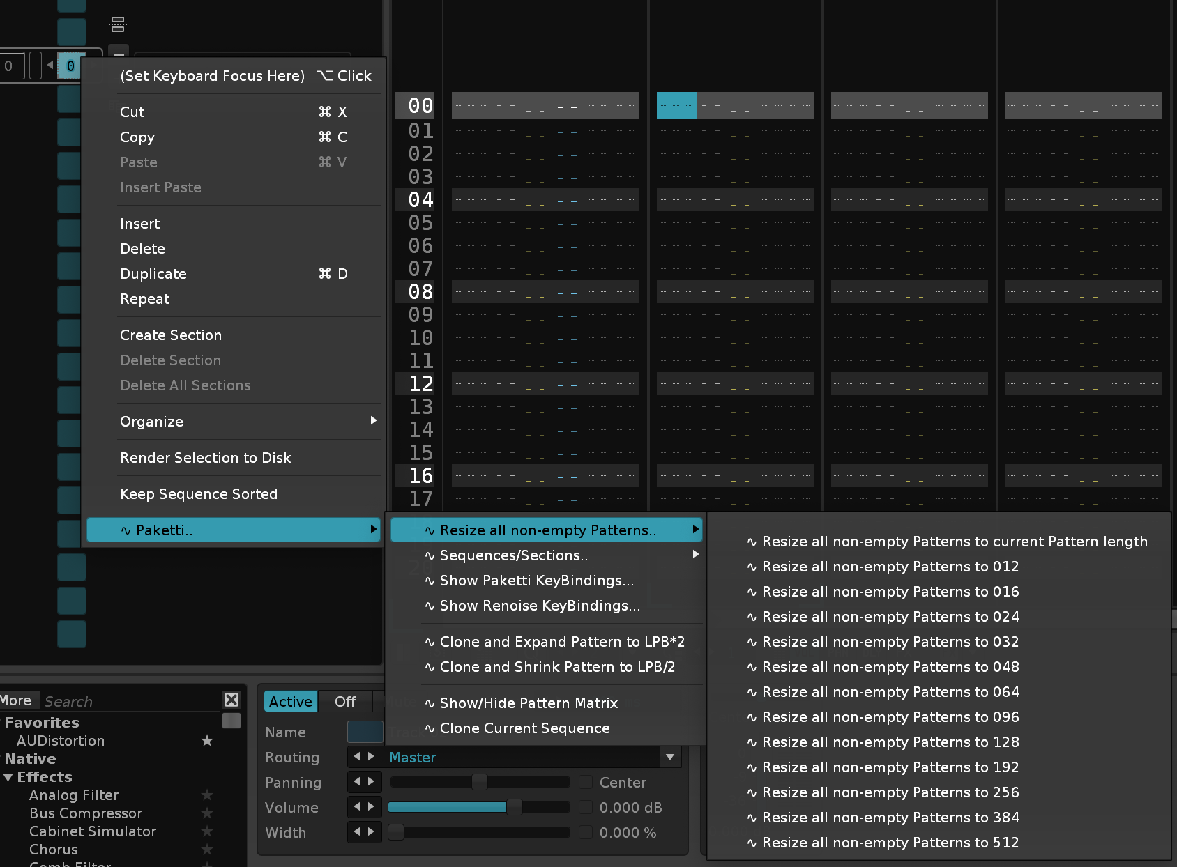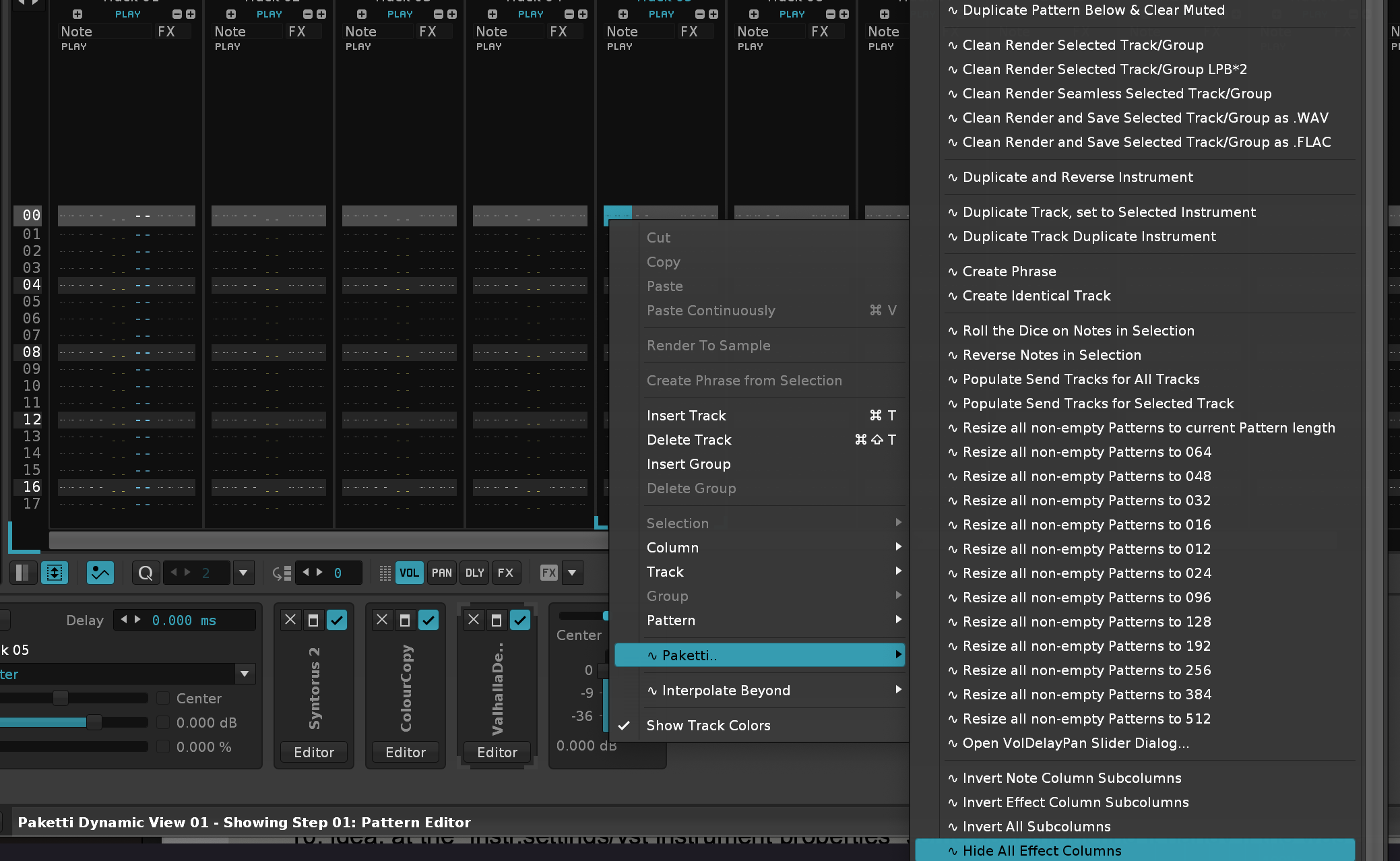Pattern Editor:Paketti:Destructive Clean Render In PlacePattern Editor β Paketti β Clean Render β Destructive Clean Render In PlacePaketti:Destructive Clean Render In PlacePattern Matrix: