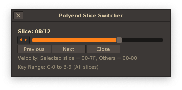 0Sxx to trigger the slices - this enables you to have 128-256 slices triggered. If less than 119 slices, then it defaults to using the keymapping notes instead of 0Sxx.