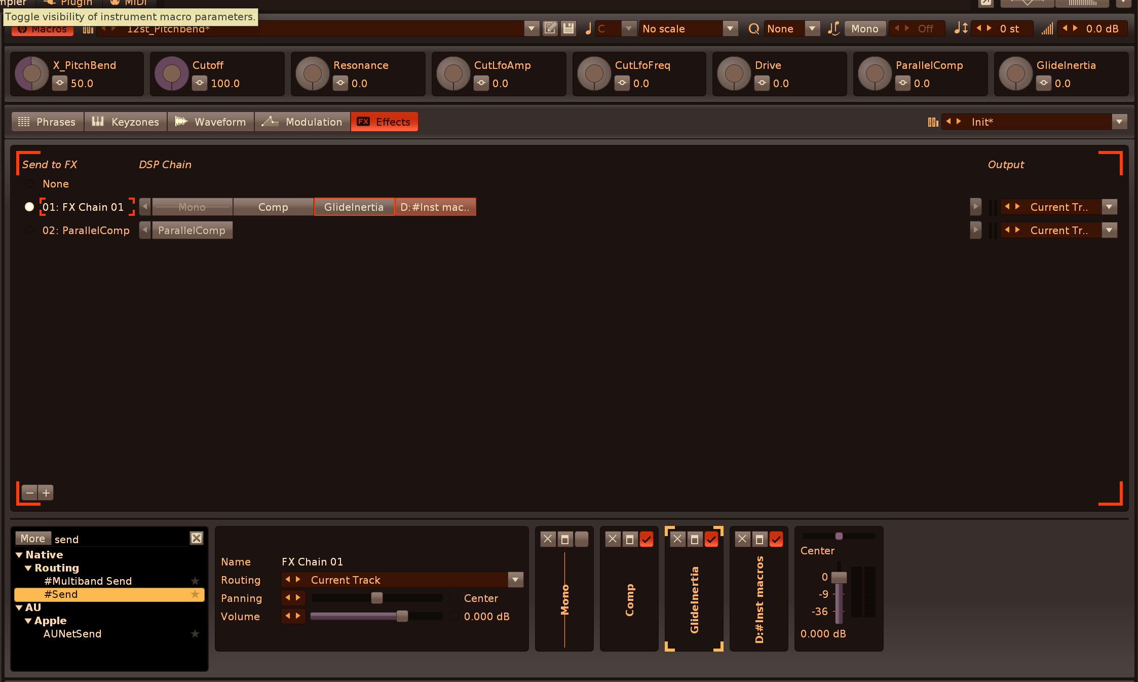 Additional bonus: Since you now have a FX Chain for Wave A, and a FX Chain for Wave B, the Wave A Chain1 and Wave B Chain2 can have effects loaded in and there will be automatable crossfading between the actual Chain output (such as effects) of the Waves.