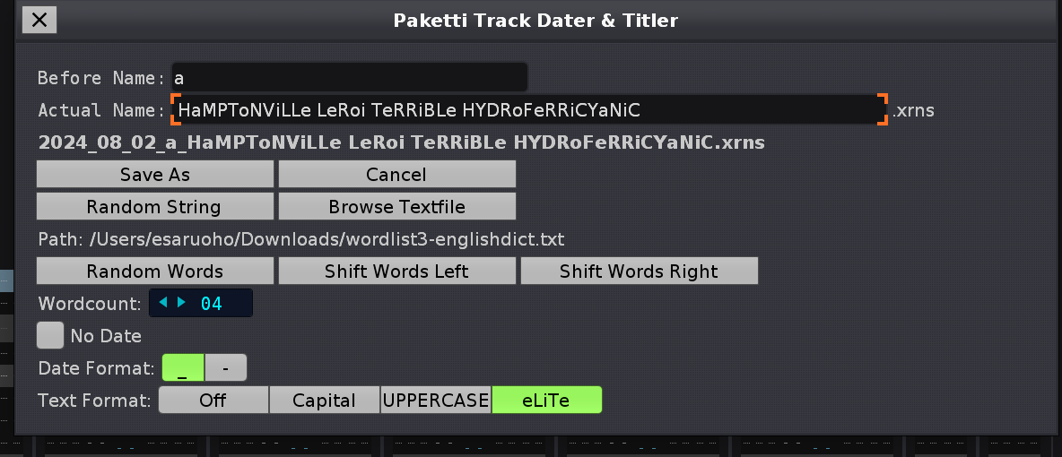Now has a dropdown menu for adding CCizer textfiles from Paketti folder, and for browsing for new ones
