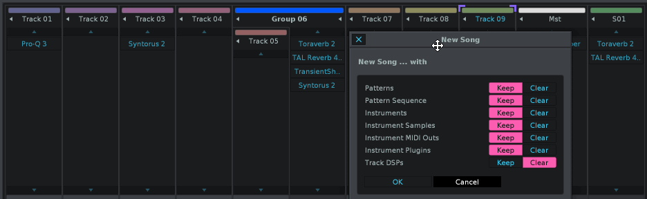 Pattern Matrix:Paketti:Destructive Clean Render Matrix In PlaceGlobal:Paketti:Destructive Clean Render Matrix In PlacePattern Matrix β Paketti β Destructive Clean Render Matrix In PlacePaketti:Destructive Clean Render Matrix In PlaceThe status bar reports exactly what was cleaned up, e.g. "deleted 3 unused instruments, stripped 7 DSP devices".