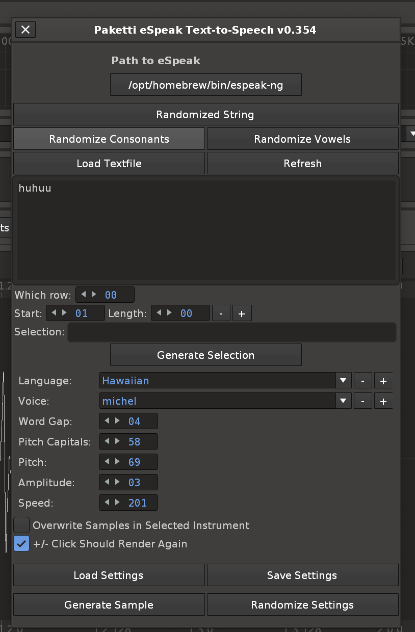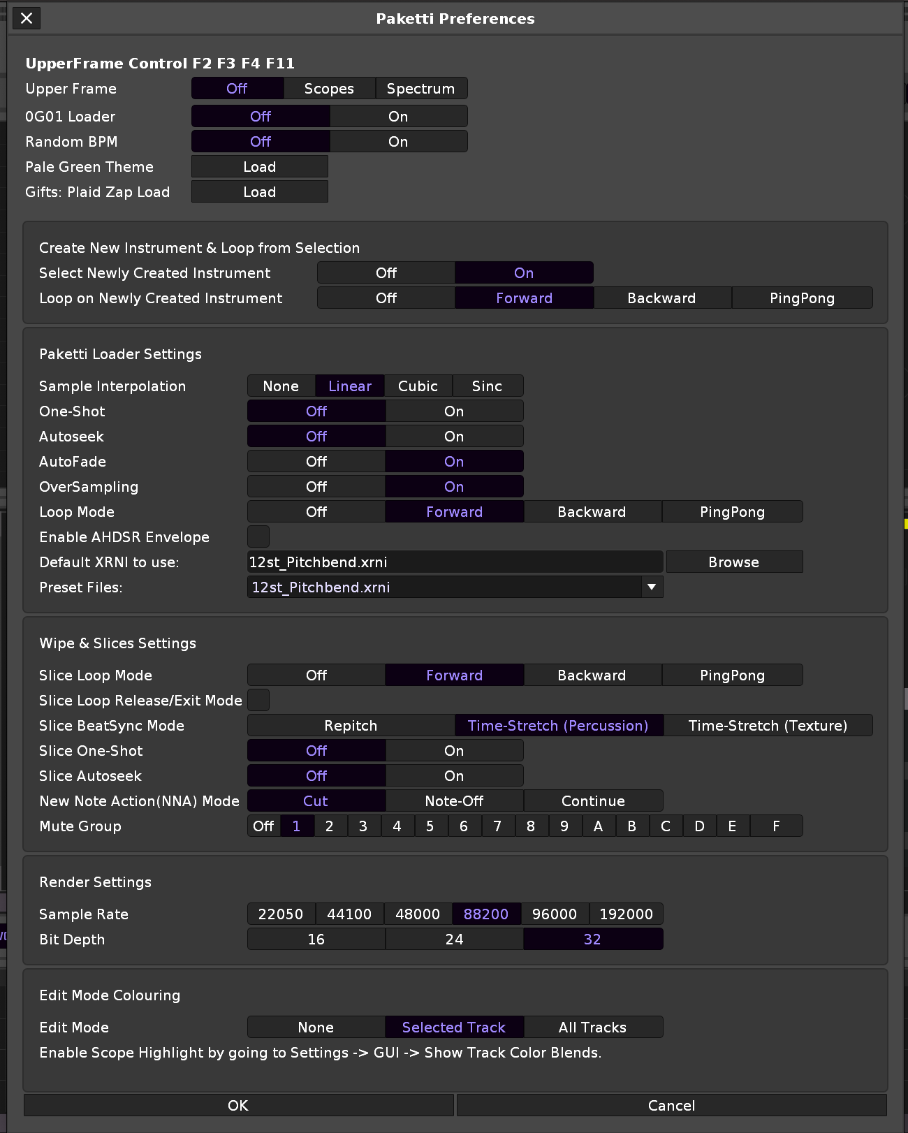 Previously, when you generated a sine wave or an amplitude-modulated sine wave using the built-in generators, the resulting sample ignored all of your Paketti Loader preferences β interpolation was left at Renoise's default instead of your chosen setting (e.g. Sinc), and oversample, autofade, autoseek, new note action (NNA), oneshot, and loop release were all at factory defaults regardless of what you had configured. Now both generators apply your full Paketti Loader settings to every sample they create, so generated waveforms behave consistently with loaded samples right out of the box.