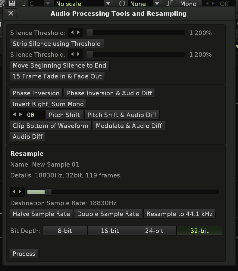 This allows for resampling a oneshot sample to fit 7 octaves and export .OT out of it