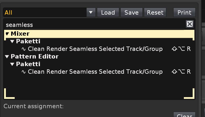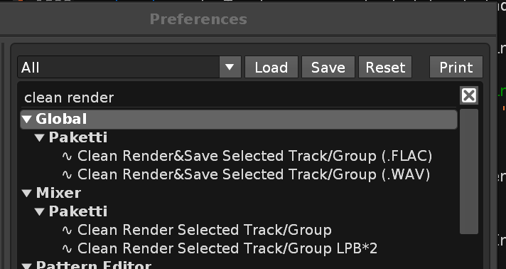 Pattern Editor:Paketti:Clean Render In PlacePattern Editor:Paketti:Clean Render:Clean Render In PlacePaketti:Clean Render In PlaceAdded Clean Render In Place β a one-keybind workflow that renders the selected pattern area, clears the original notes, places a C-4 note with the rendered instrument at the start of the selection, and automatically deletes any instruments that were only used in that selection and are now unused anywhere in the song. This replaces the manual process of: render selection β Ctrl+X β delete unused instruments β fix instrument references.