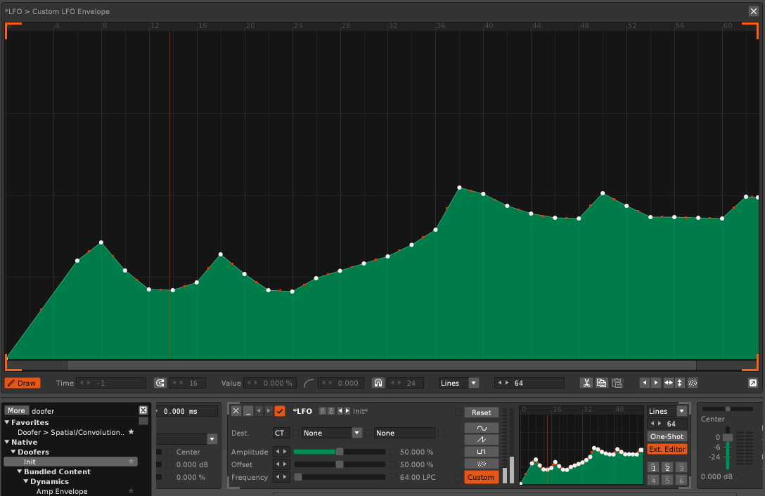 Shortcut that loads LFO in Custom mode with External Editor exposed. If LFO Custom already exists, same shortcut will hide or expose the External Editor.